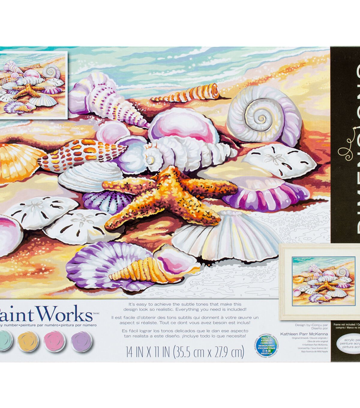The Dimensions PaintWorks Paint By Number Kit-Shells is fun and quick. With its color mixing, it's possible to achieve the subtle tones that make your designs look realistic. Crafters will enjoy the exceptional selection of designs and the great results. This package contains 12 non-toxic acrylic paint pots (0.16 ounces each), one 11 x 14-inch printed board, one paintbrush and instructions.