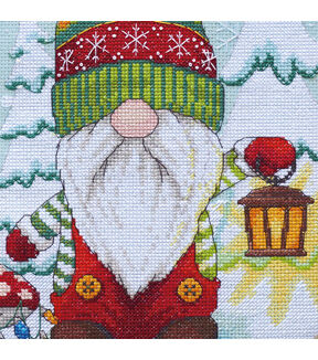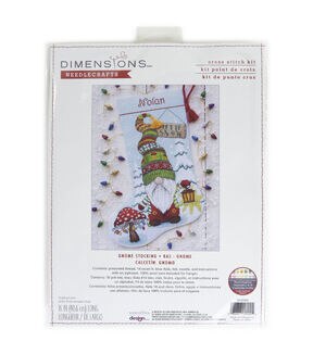 Gnome Stocking by Dimensions showcases an adorable woodland fellow in a long, long, long stocking cap. Even the toadstool is decked out for the season in this counted cross stitch design. This package contains presorted thread, 14 count lt. blue Aida, felt for stocking back, 100% wool yarn for stocking hanger, needle, and instructions with an alphabet for personalizing. Design: Gnome Stocking. Finished size: 16 inches long. Imported.