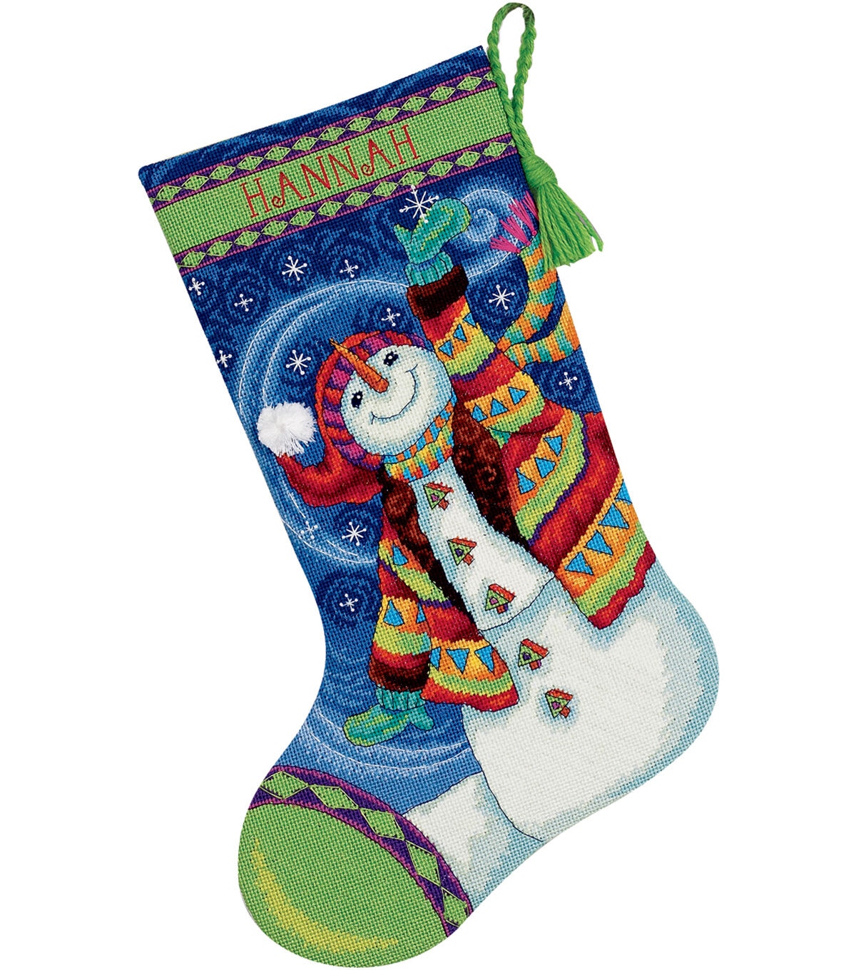 DIMENSIONS-Needlepoint: Holiday Collection Stocking. From elegant to whimsical, landscapes to still-life's, realistic to fantasy, no matter your style Dimensions has a fabulous needle-craft kit for you. The high quality goods accompanied by the wide range of artists makes Dimensions #1. The kit contains: full color print on 14 mesh canvas, 1% cotton thread, wool and acrylic yarns, felt for backing, needle, easy to follow instructions and a complete alphabet for personalization. Finished measurements: 16in long (41cm). Design: Happy Snowman. Imported.