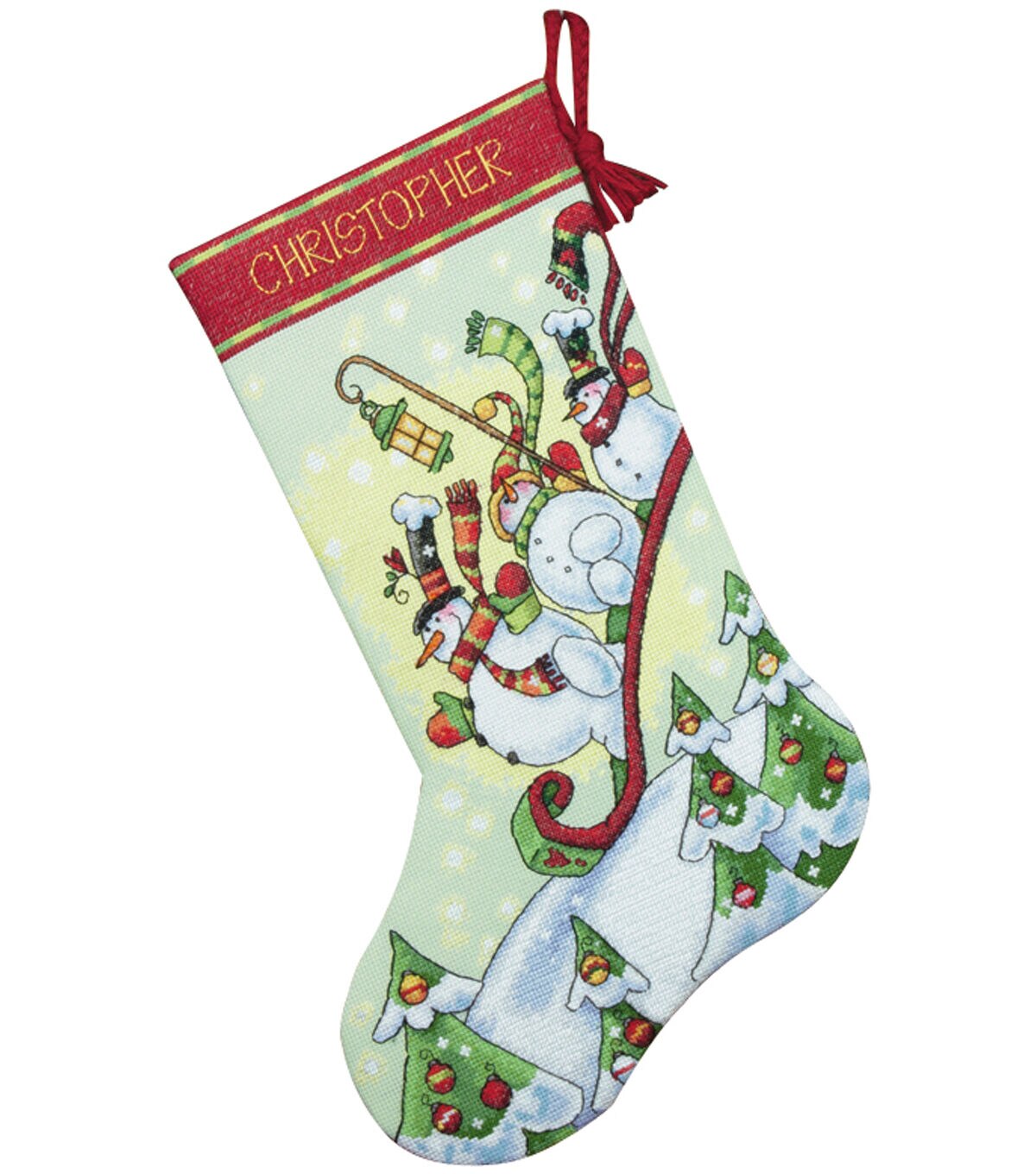 Have fun this holiday season with the Dimensions Sledding Snowmen Stocking Counted Cross Stitch Kit 16''. It comes with a fun and cheerful design in an attractive color combination, sure to imbue everyone with the festive spirit. Cross stitch on this design by following the simple stitching instructions and strike a chord with your loved ones. This counted cross stitch kit includes a 14-count cotton Aida fabric, needle, wool yarn, pre-sorted cotton floss, polyester felt, alphabet and easy-to-understand instructions. Finished size measures 16 inches long.