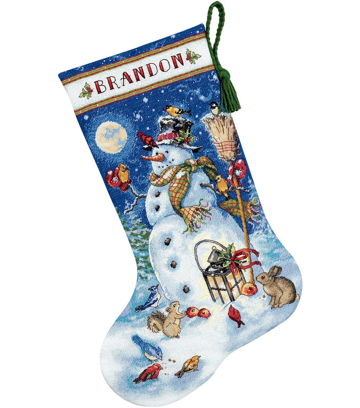 - The Gold Collection Kits are wonderfully detailed with full and half cross stitches. This kit contains 18 count Aida; cotton thread; wool yarn; felt; needle; and easy to follow instructions with a complete alphabet for personalization. Made in USA.