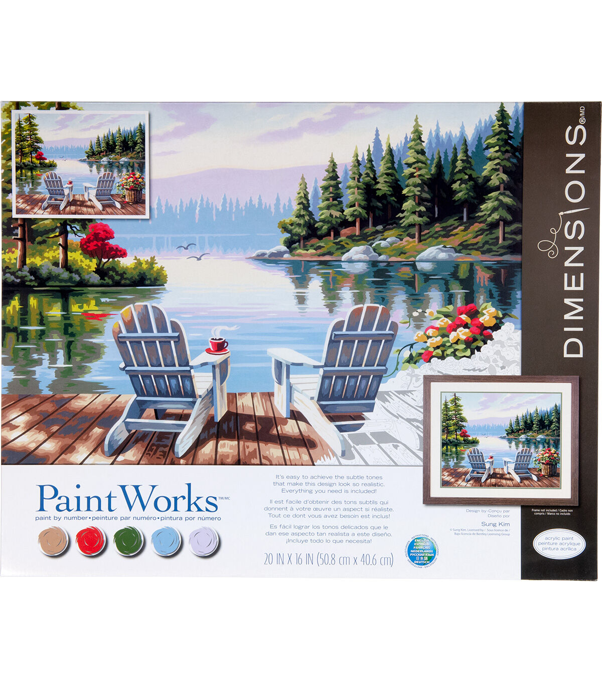 A perfect day at the lake comes to a close in Echo Bay by PaintWorks. This relaxing scene will appeal to any outdoor enthusiast. Design Darrell Bush. Courtesy of MHS Licensing.