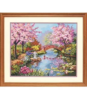 The colorful blossoms and quiet serenity of this Japanese Garden are brought to life in this paint by number design from PaintWorks. Techniques to achieve the subtle shading are included in the instructions. Design © Sung Kim. Licensed by Bentley Licensing Group.