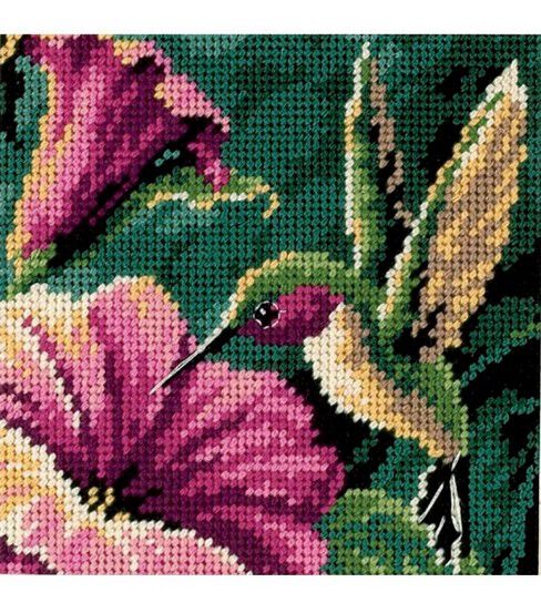 Create a beautiful nature-inspired cross stitch design by referring to the instructions in Dimensions Hummingbird Drama Mini Needlepoint Kit 5'' x 5''. The 14 mesh full color fabric included in this mini needlepoint kit is pre-printed with a delightful hummingbird design. This 5 x 5-inch design comes alive when cross stitched with a needle and colorful stranded cotton threads. Frame this picture and display it on a focal wall at home or gift the printed canvas design to a loved one who enjoys cross stitch projects.