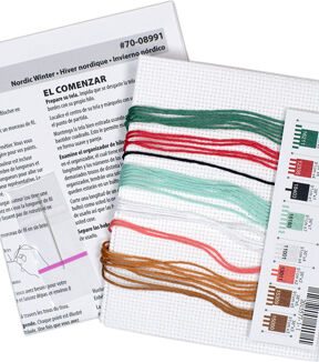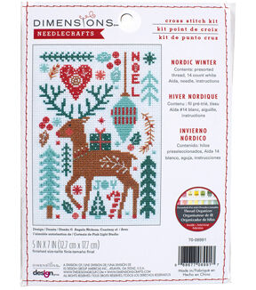 Nordic Winter by Dimensions is chock full of classic holiday motifs. This quick and easy counted cross stitch design is perfect for displaying on a wall, shelf, or mantel throughout the Christmas season. This package contains 14 count white Aida, presorted thread, a needle, and instructions. Finished size: 5x7 inches. Design: Nordic Winter. Design Copyright Angela Nickeas, Courtesy of Pink Light Studio. Imported.