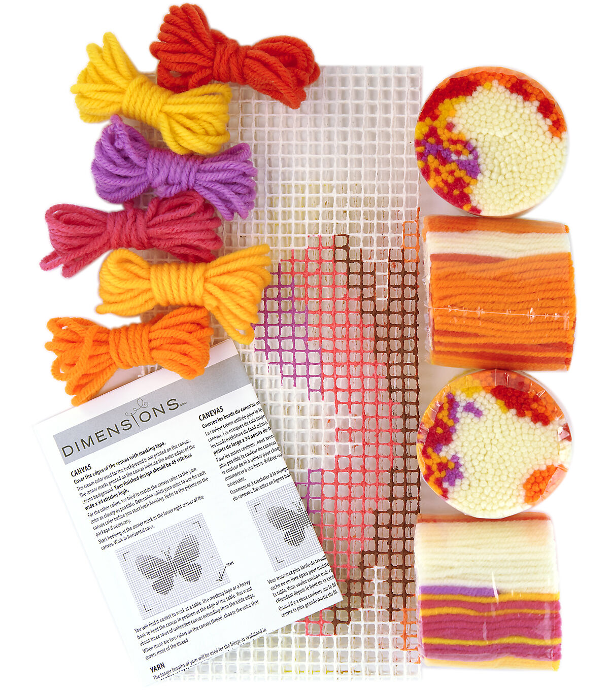 - Includes full-color printed canvas, yarn for latch hooking and to make fringe, and easy-to-follow instructions. Latch hook tool needed but not included.