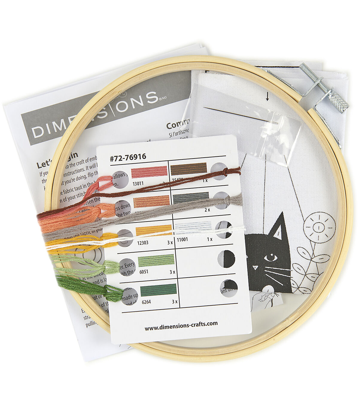 - Includes presorted thread, printed fabric, 6-inch bamboo hoop, needle and instructions