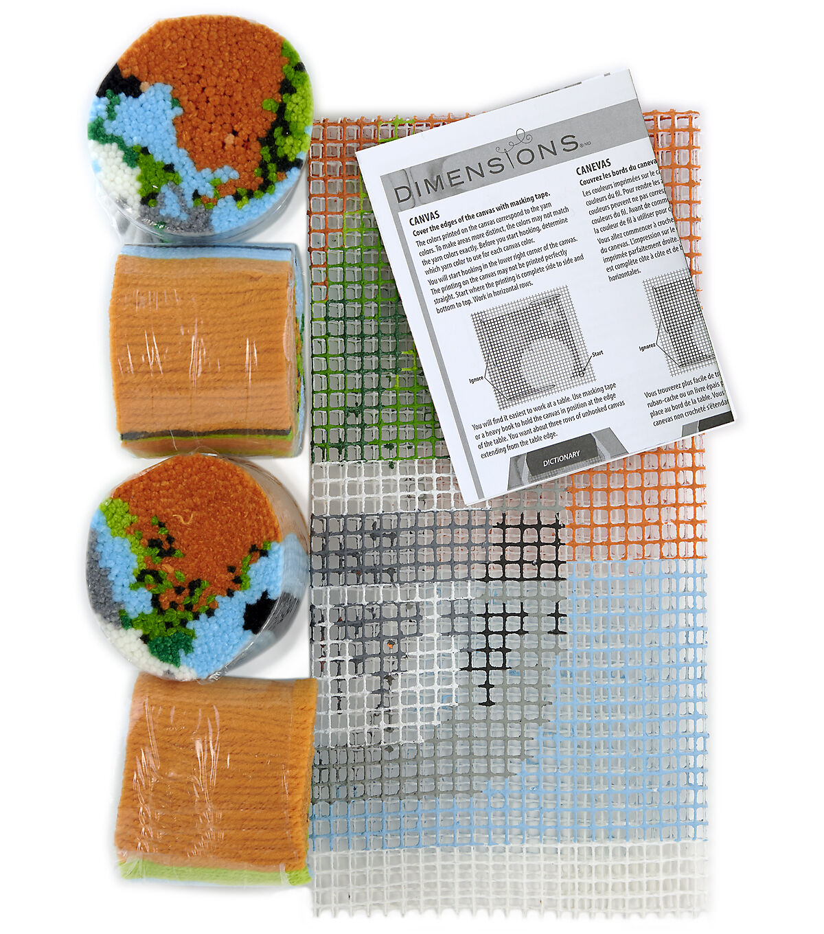- Includes full-color printed canvas, pre-cut acrylic yarn, and easy-to-follow instructions. Latch hook tool needed but not included.