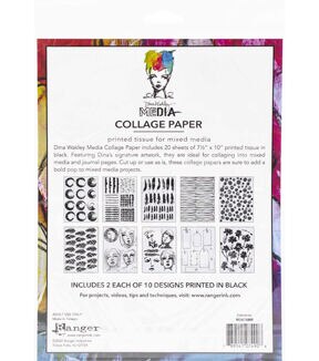 Featuring Dina Wakley's signature artwork, this tissue paper is ideal for collaging into mixed media and journal pages! This 7.75x10.25 inch package contains twenty sheets of 7.5x10 inch printed tissue in both black and white. Imported.