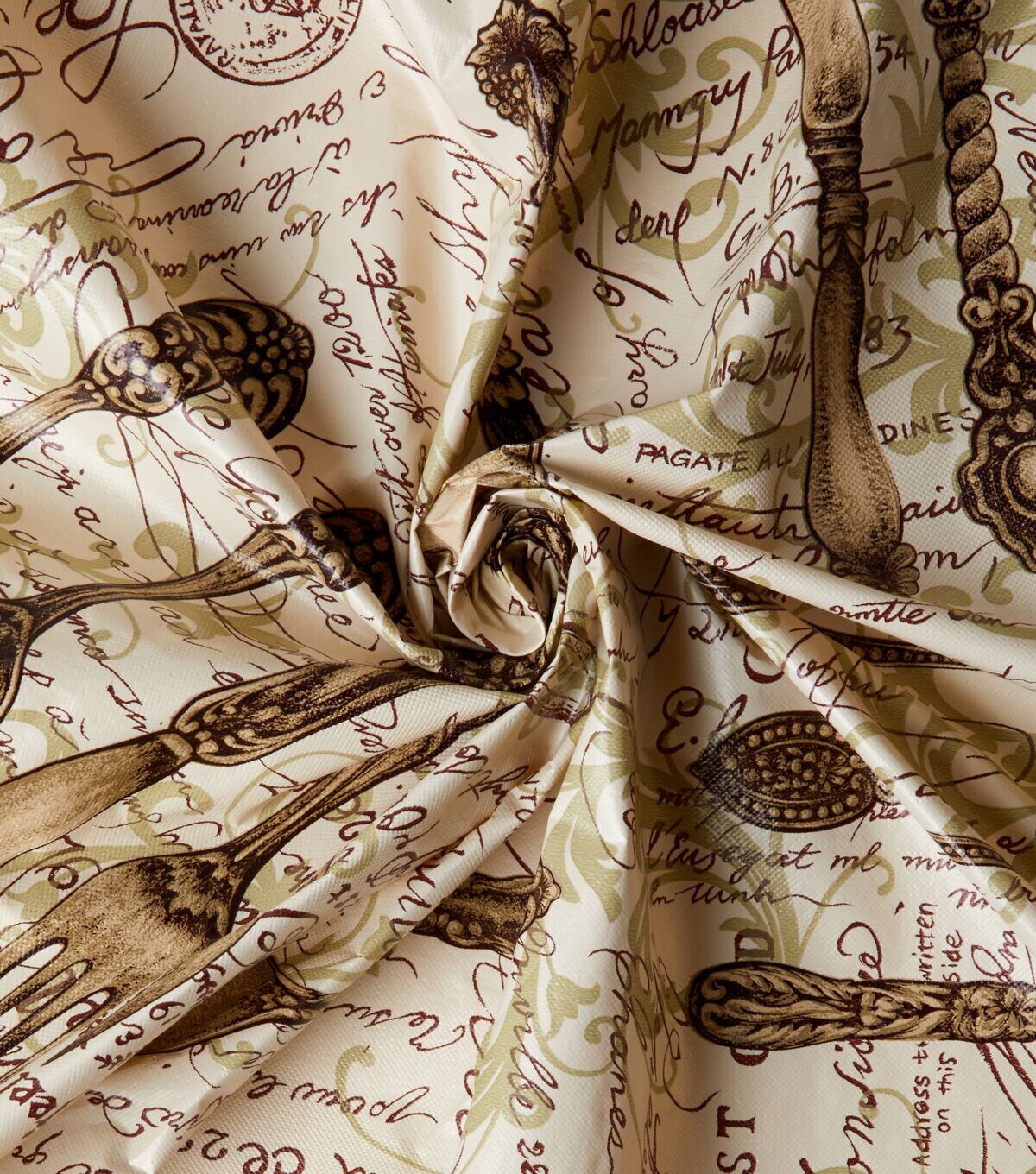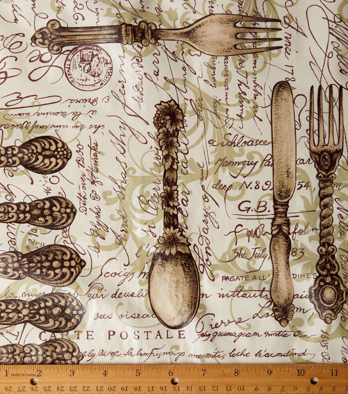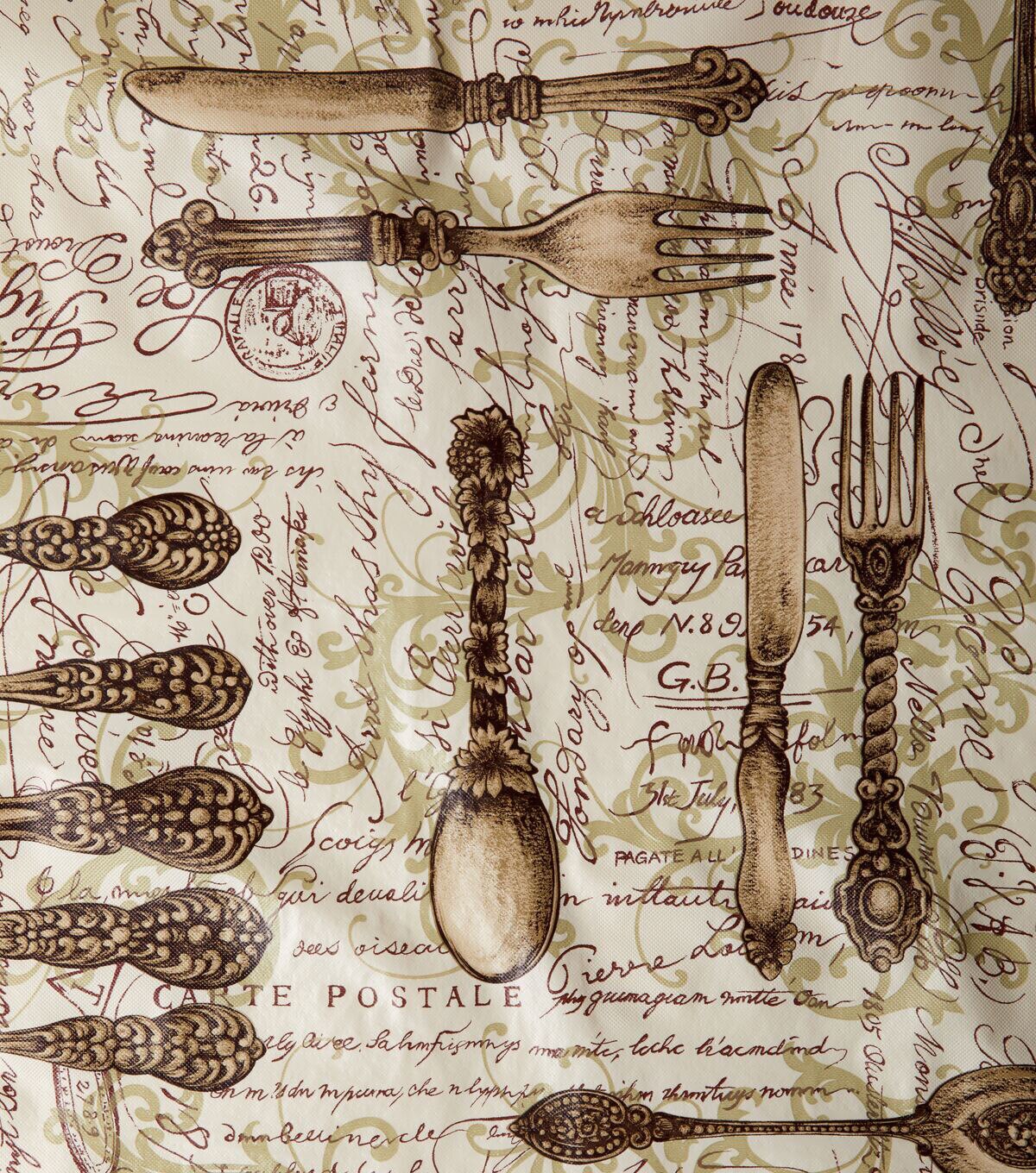 The vinyl rolled goods are the perfect solution to your decorating and table protector needs. Perfect for everyday, this charming print features neutral dinnerware. Excellent for special occasions, events, parties, picnics, barbeques, and everyday use, this table cloth has a flannel backing that holds it in place and creates extra durability. Vinyl face fabric is water and stain resistant and wipes clean with a damp cloth. Flocked backing can be steamed to release stubborn creases and make your tablecloth wrinkle free. Hemmed edge adds a finished look and prevents wear and tear. Available as a rolled good.
