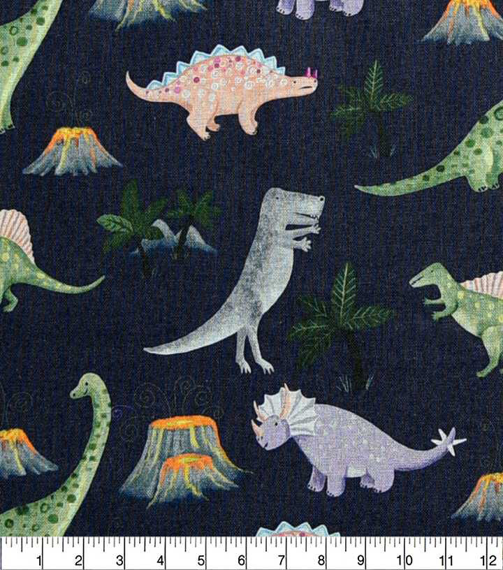 Dinos And Palm Trees On Gray Novelty Print Fabric