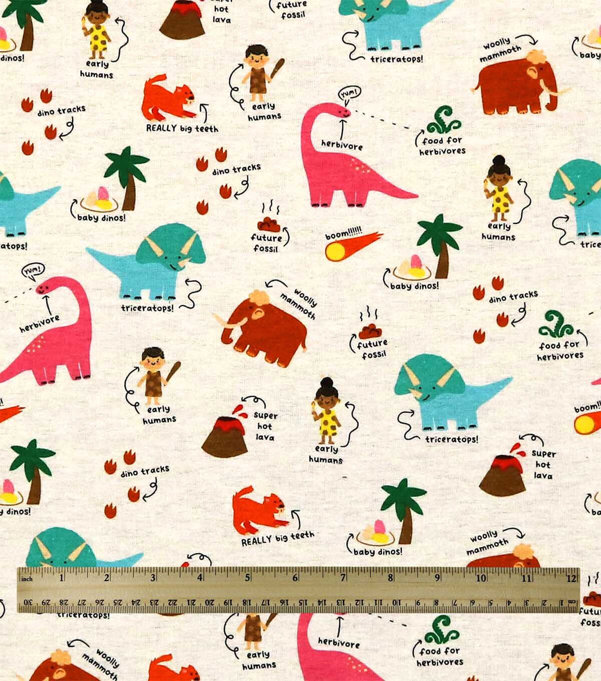 Dinosaurs & Kids on White Super Snuggle Flannel Fabric