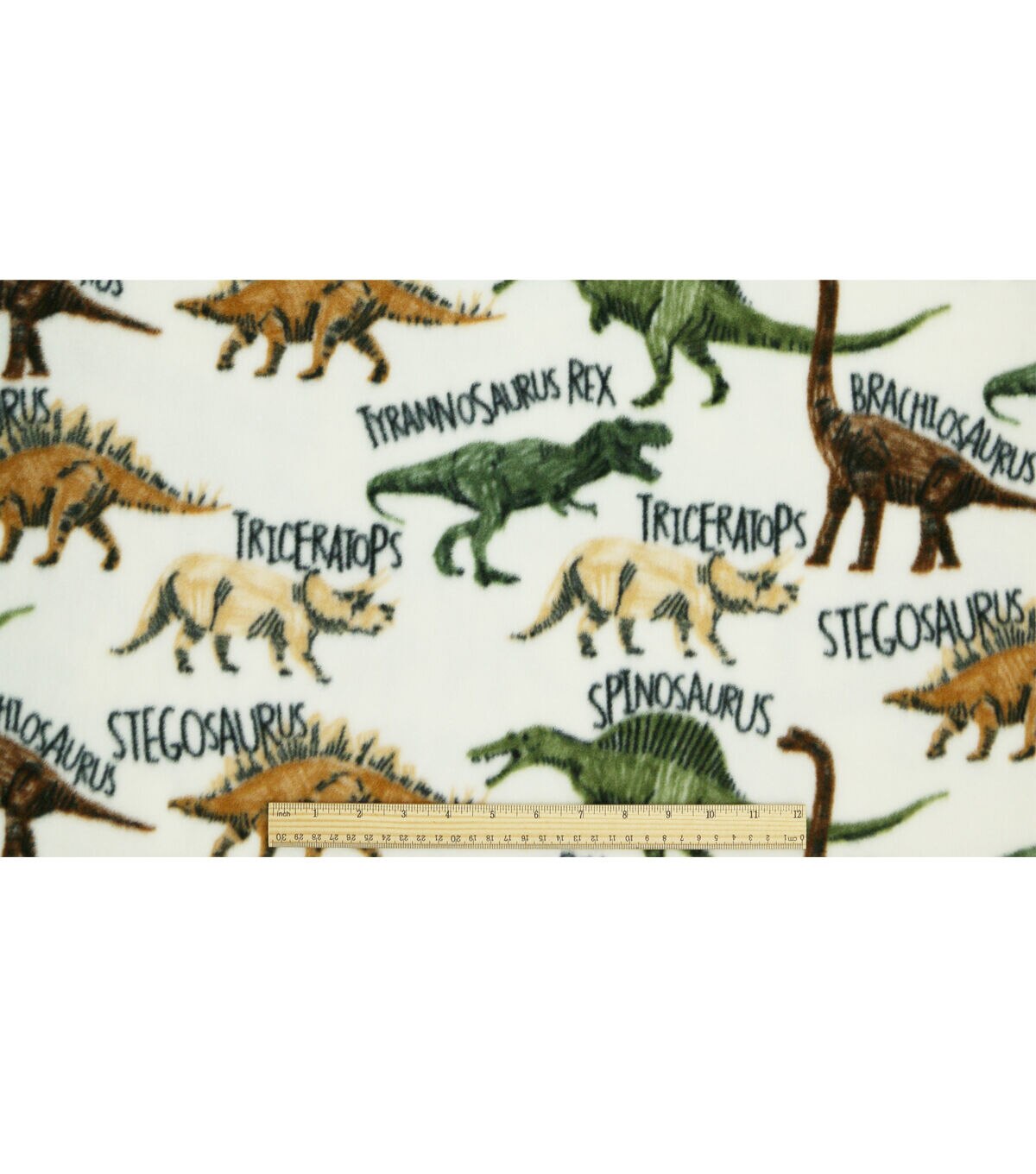 Dinosaurs & Names on Cream Anti Pill Fleece Fabric