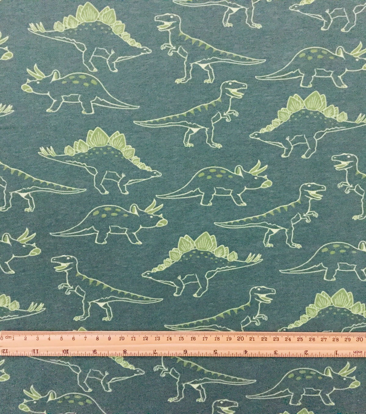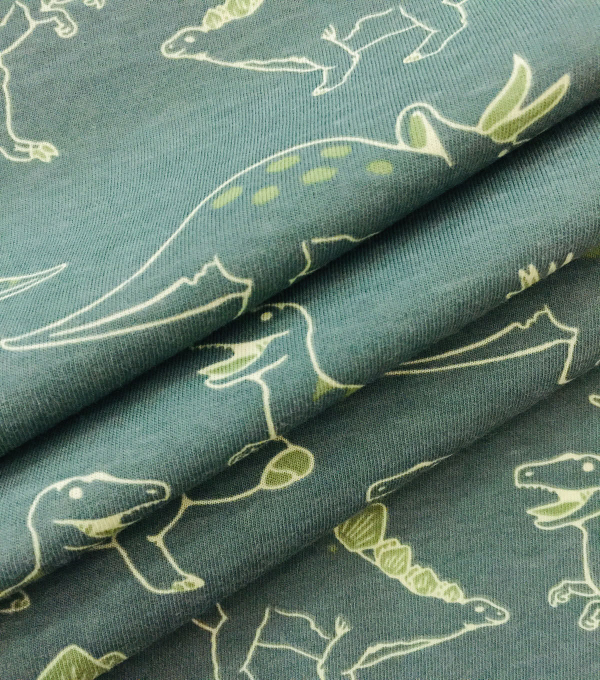 Don't settle for boring fabrics - let your creativity run wild with Dinosaurs on Green Jersey Knit Fabric. Order now and start your next project today!