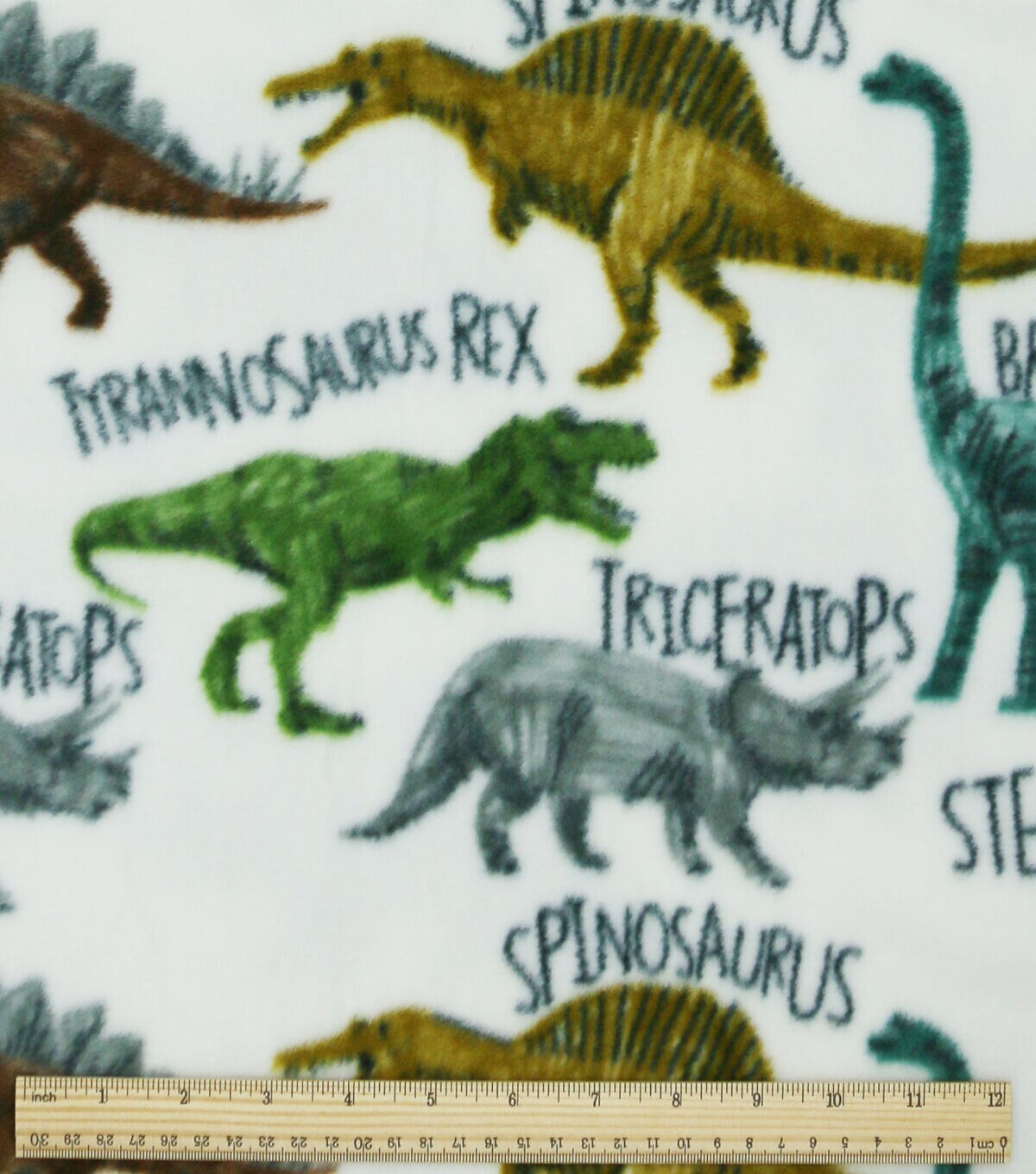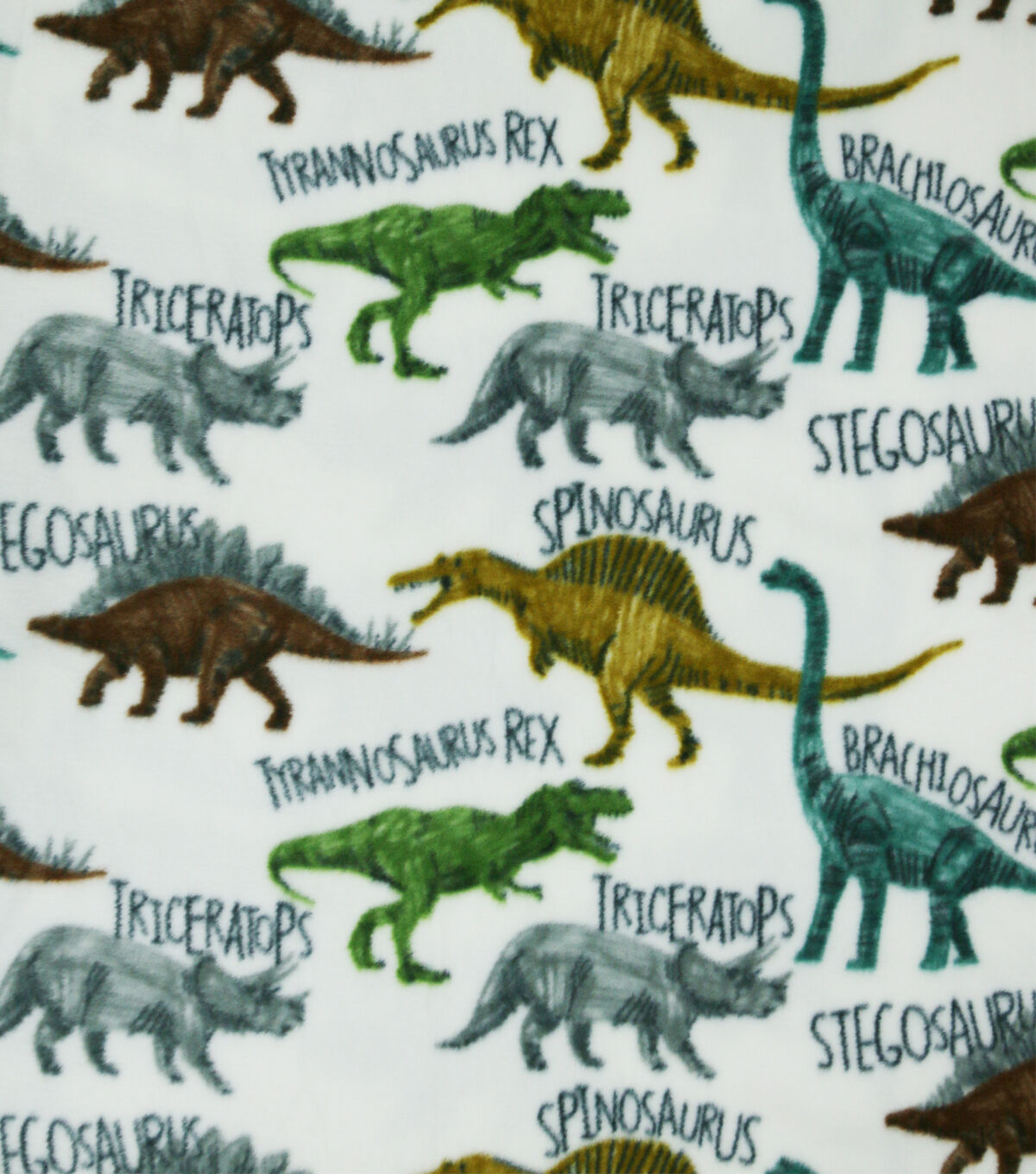 Our Dinos And Words Anti Pill Plush Fleece Fabric is available in a variety of stylish colors and prints that will add a touch of elegance to any project. The anti-pill/ pill resistant finish ensures that your projects will last longer, making it a great investment for all your crafting needs. Whether you're creating jackets, blankets, pillows, or any other no-sew projects, this ultra-soft fleece fabric is perfect for all your needs.
