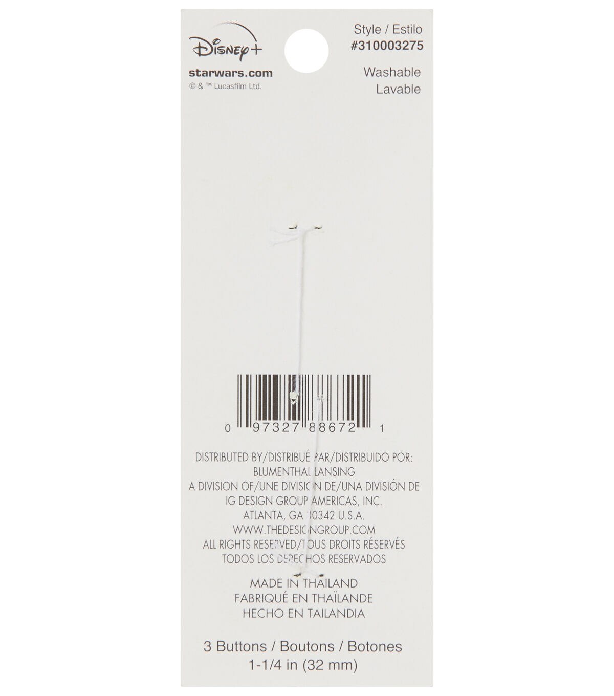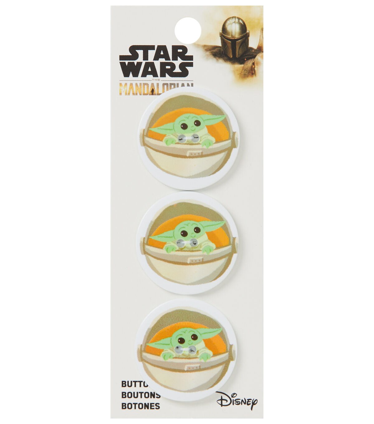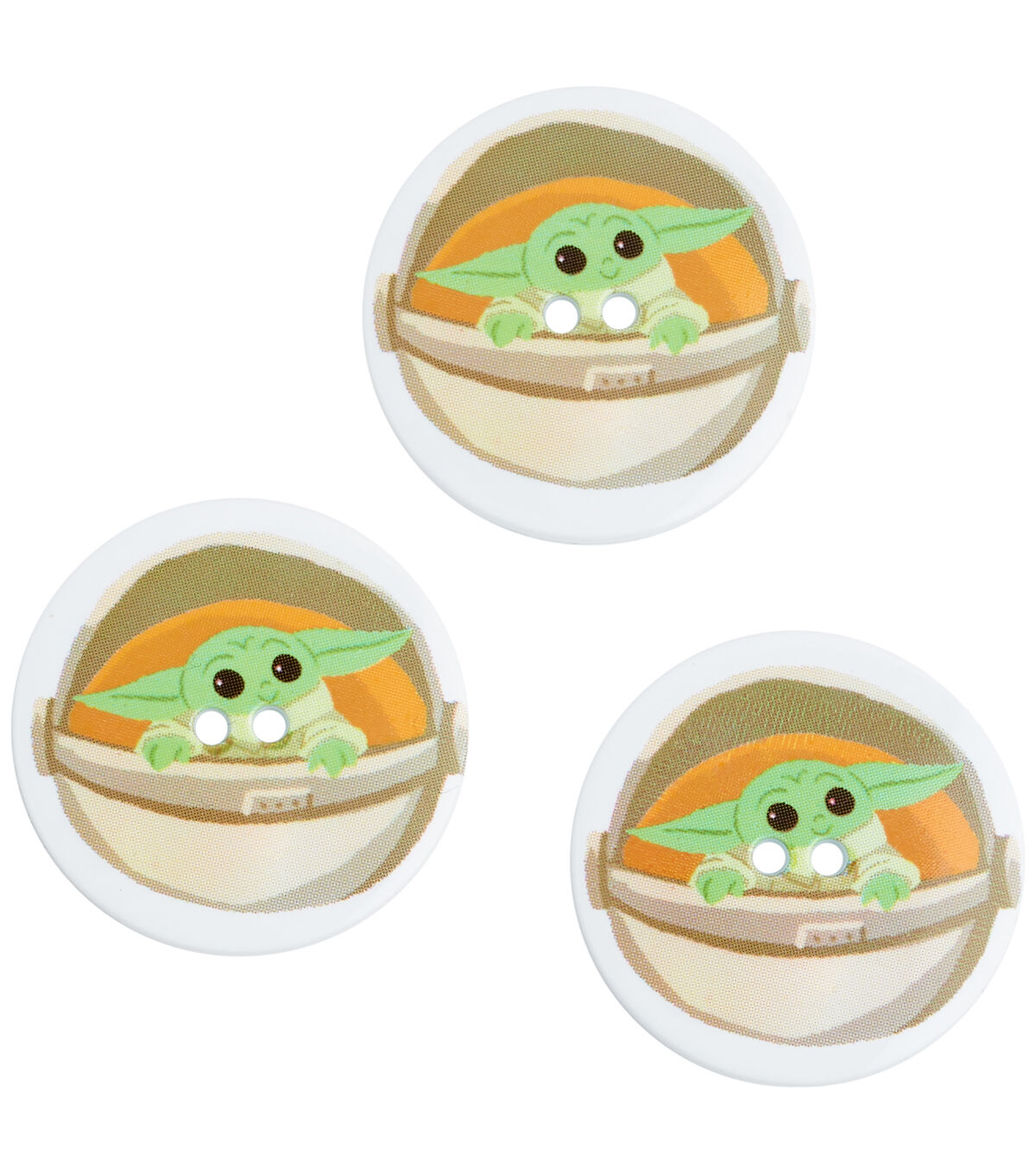 Add a new dimension to DIY fabric creations using the Blumenthal Lansing Mandalorian 2 Hole Buttons - Multi Baby Yoda. They sport a print of the character Grogu from the television series 'Star Wars'. These buttons are perfect to decorate handbags,pillow covers and more. You can also pair them with coordinating character-themed buttons from the collection,sold separately,for visual flair.