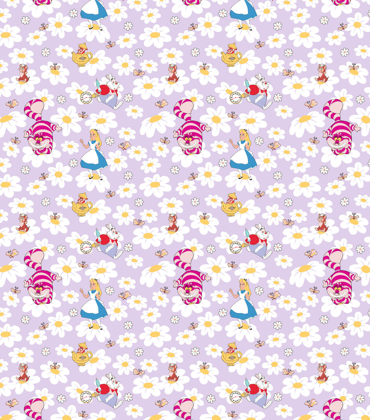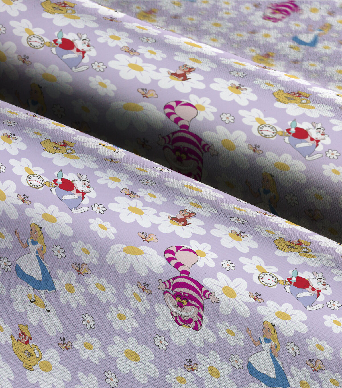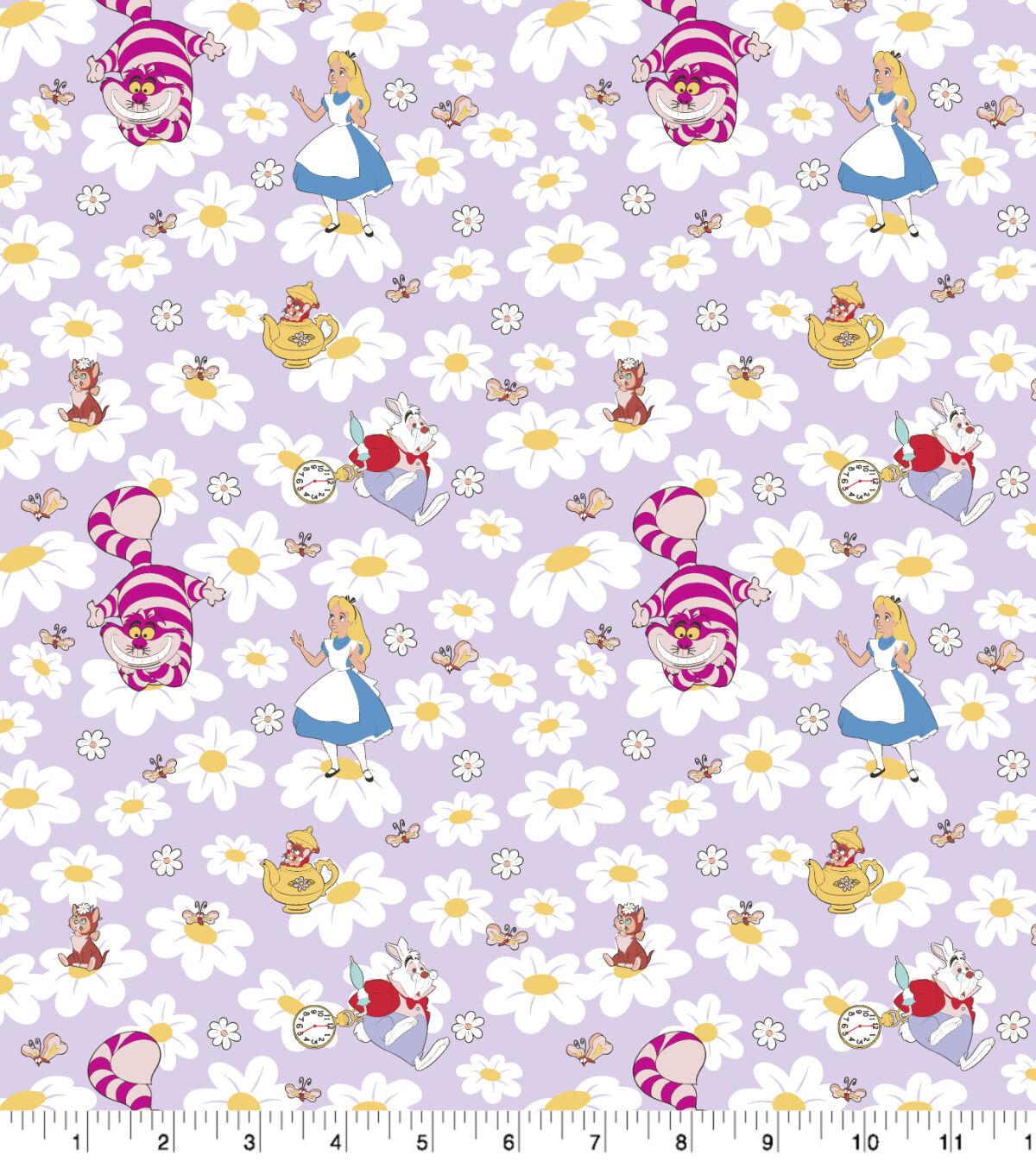 Experience the Magic of Disney with Alice in Wonderland & Floral on Purple Knit Fabric
