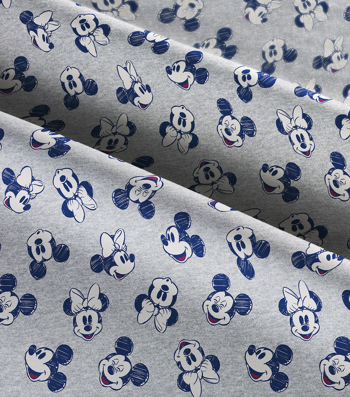 • Disney Cotton Fabric Mickey and Minnie Heathered Toss