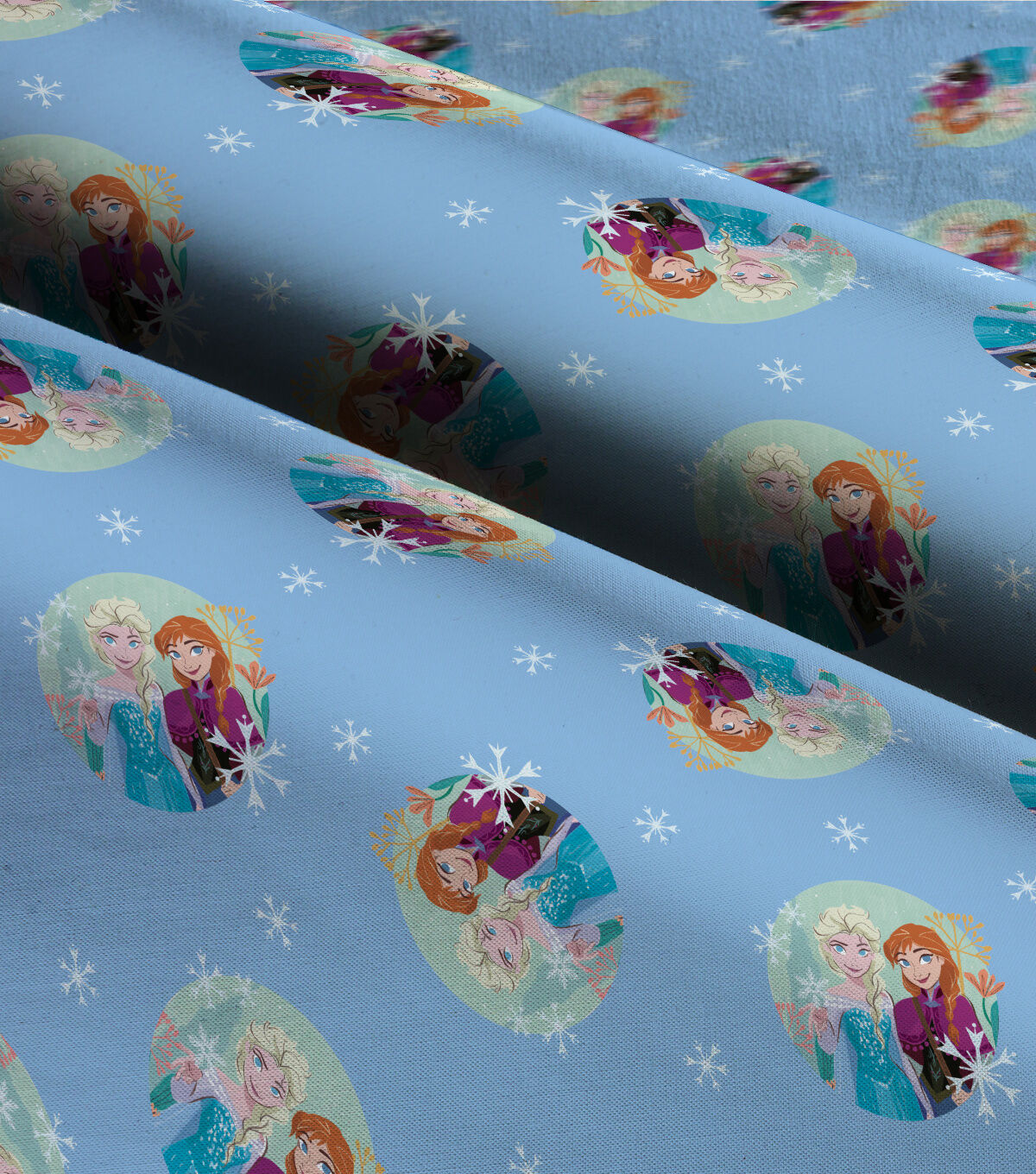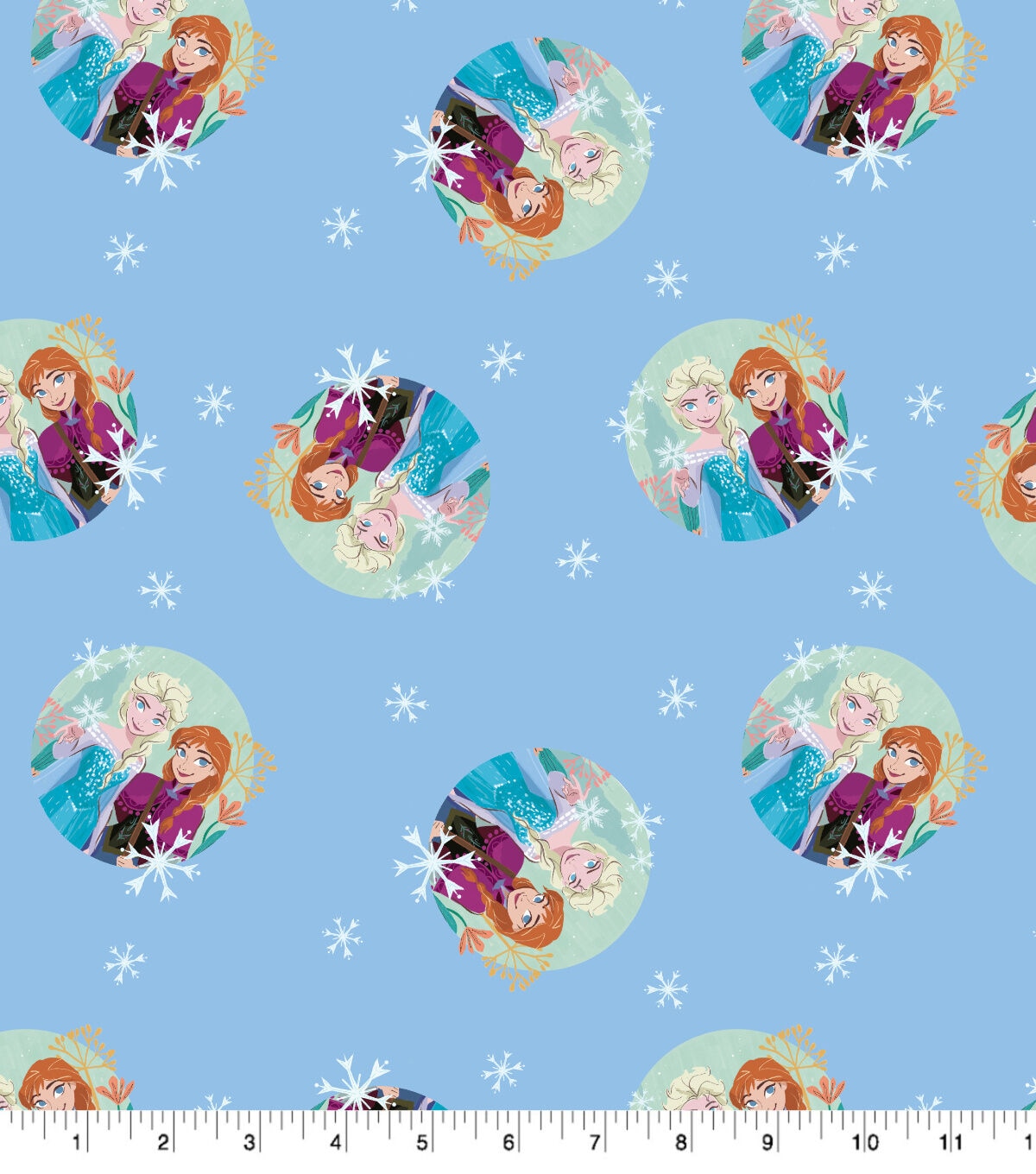 Get Ready to Embark on a Frozen Adventure with Disney's Elsa & Anna Badges on Blue Cotton Fabric