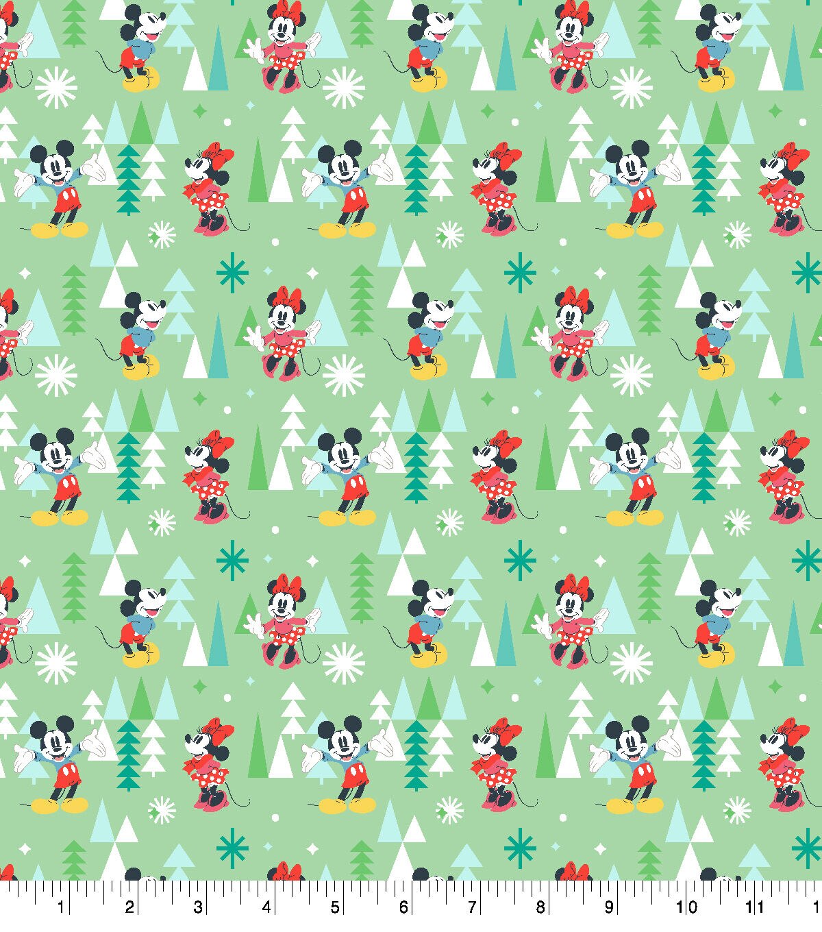 Disney Mickey Minnie Forest on Green Christmas Cotton Fabric