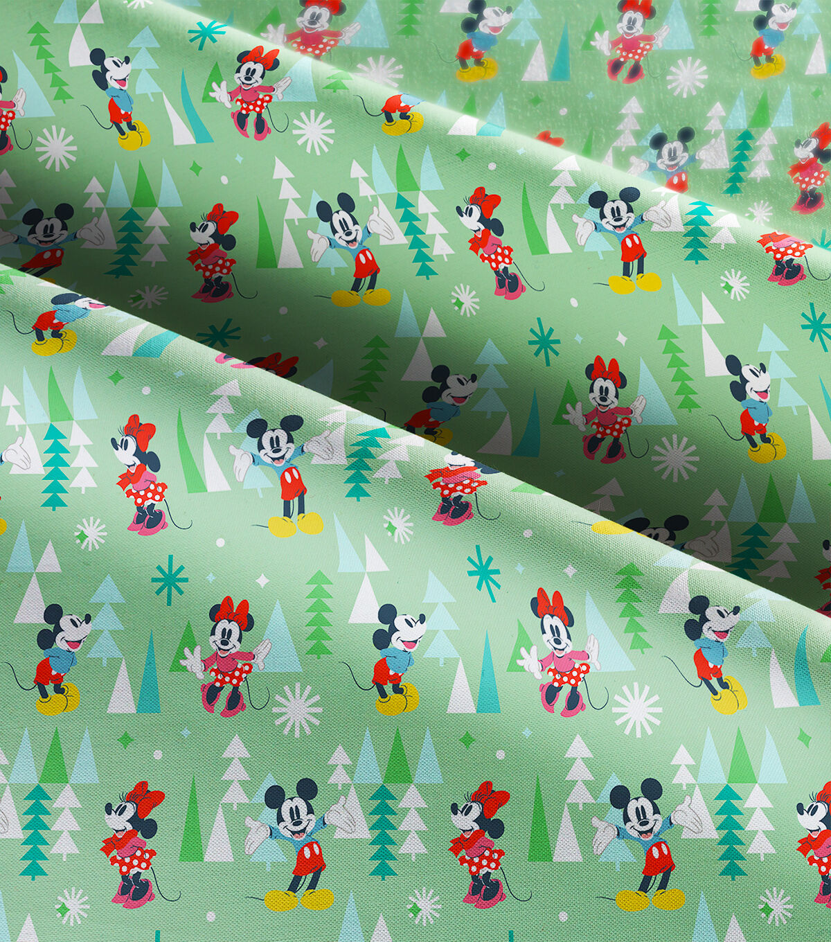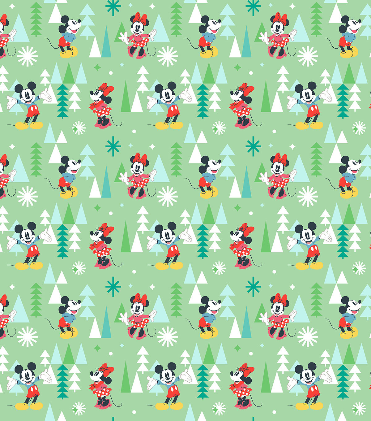 • Disney Mickey Minnie Forest on Green Christmas Cotton Fabric