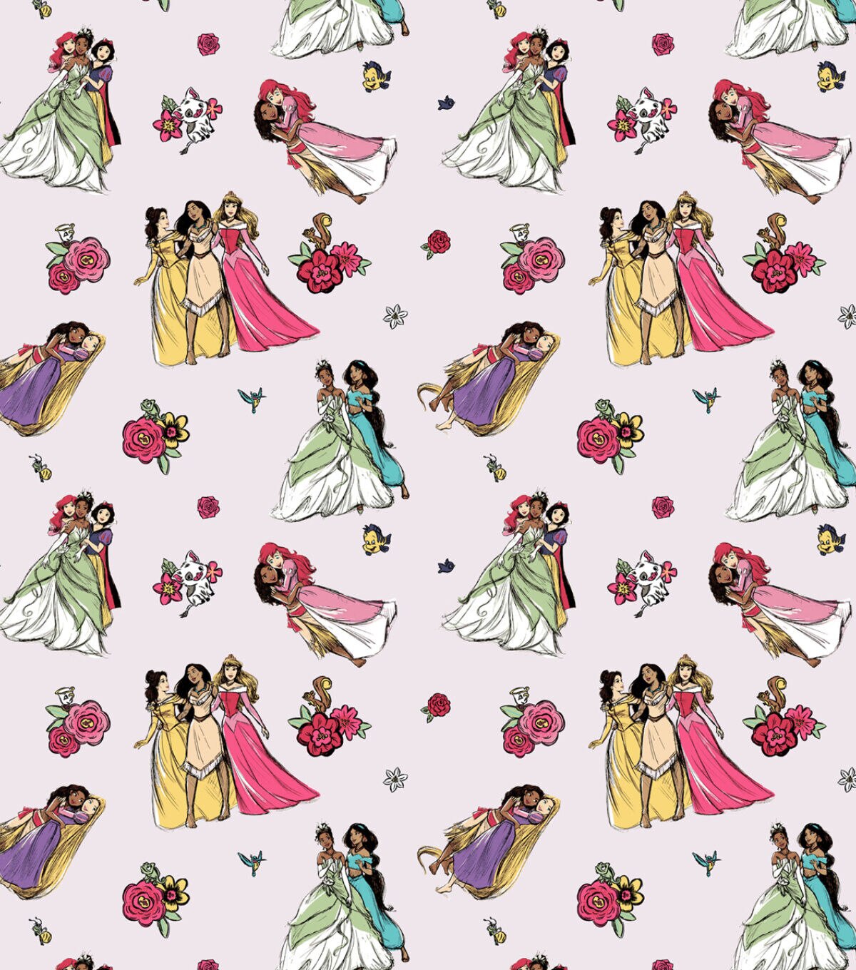 • Disney Princess Floral & Friends Cotton Fabric