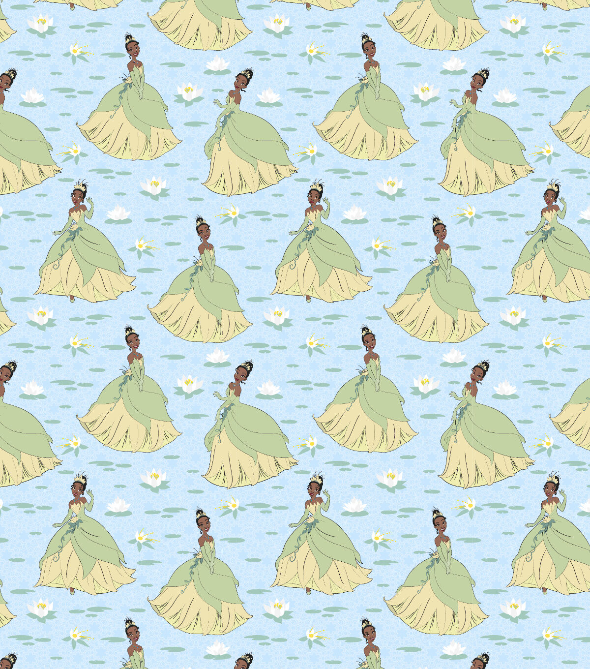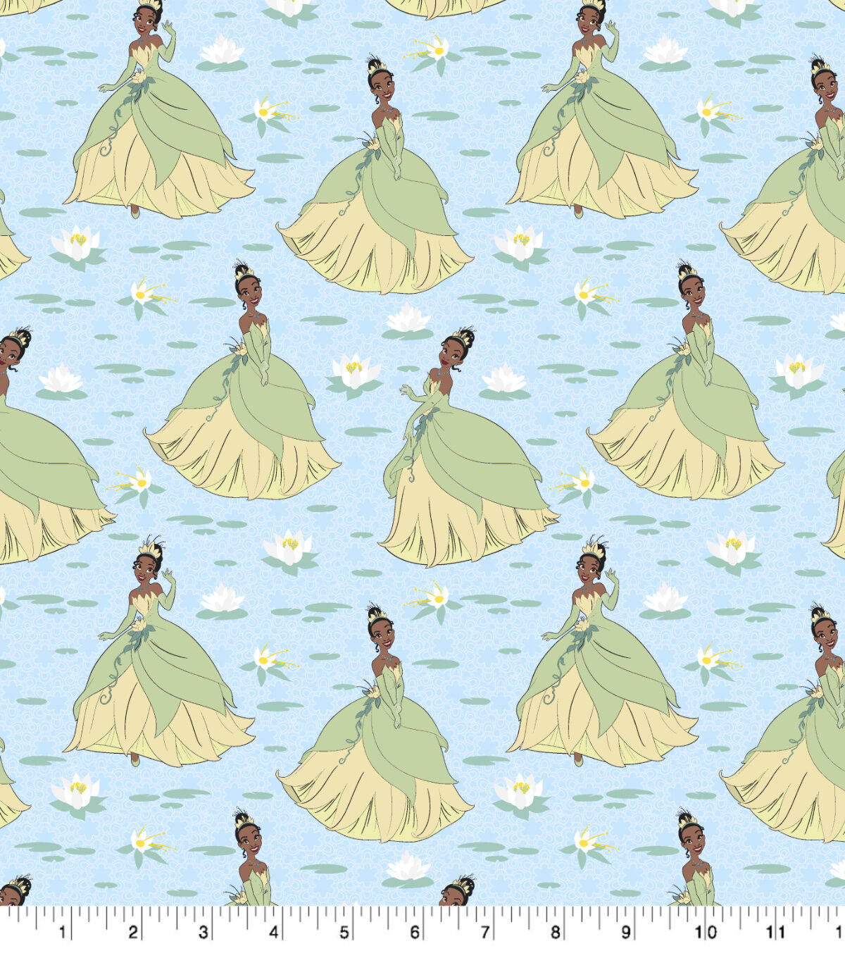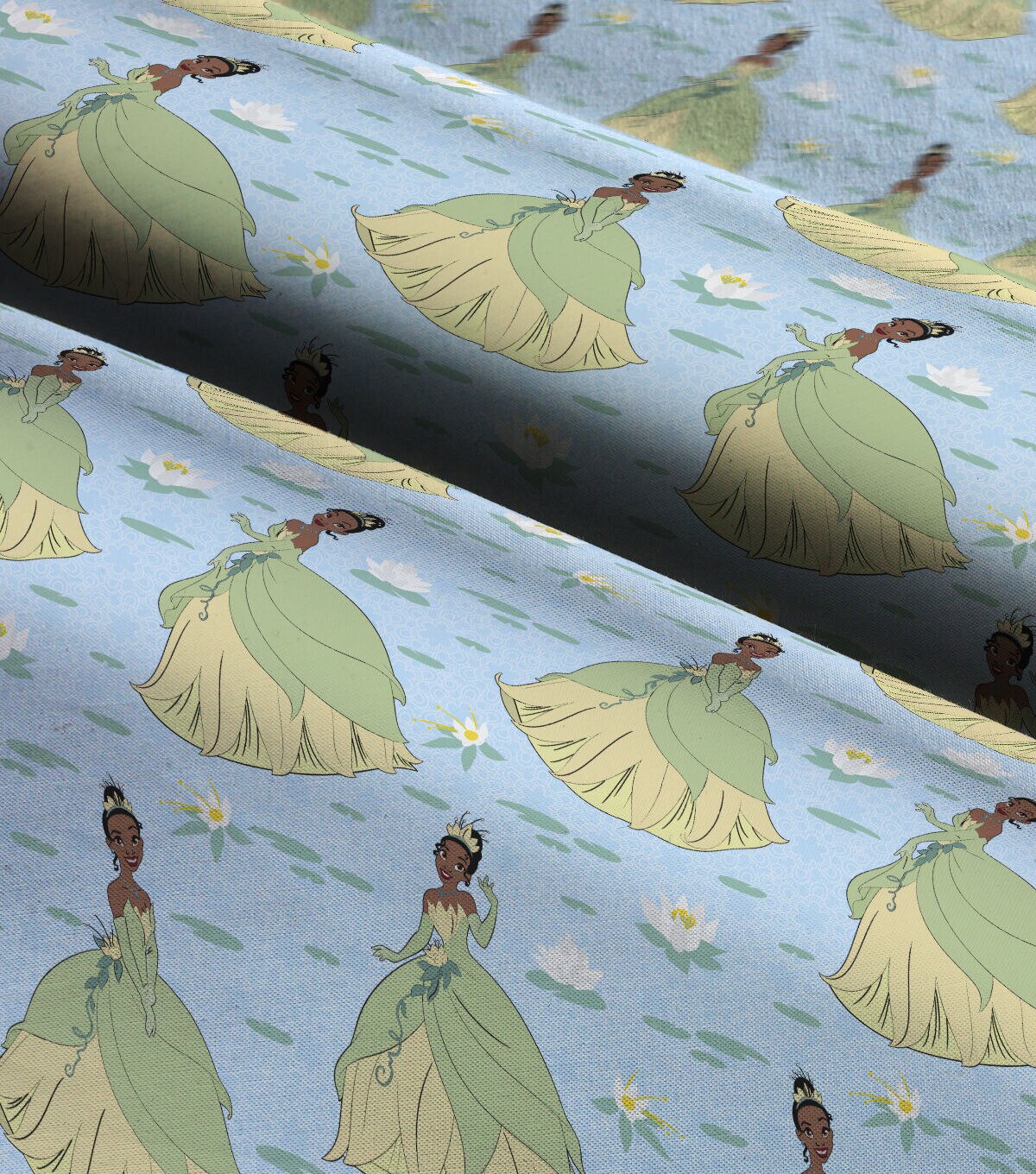 Experience the Magic of Disney with Tiana Princess Lily Pads on Blue Cotton Fabric