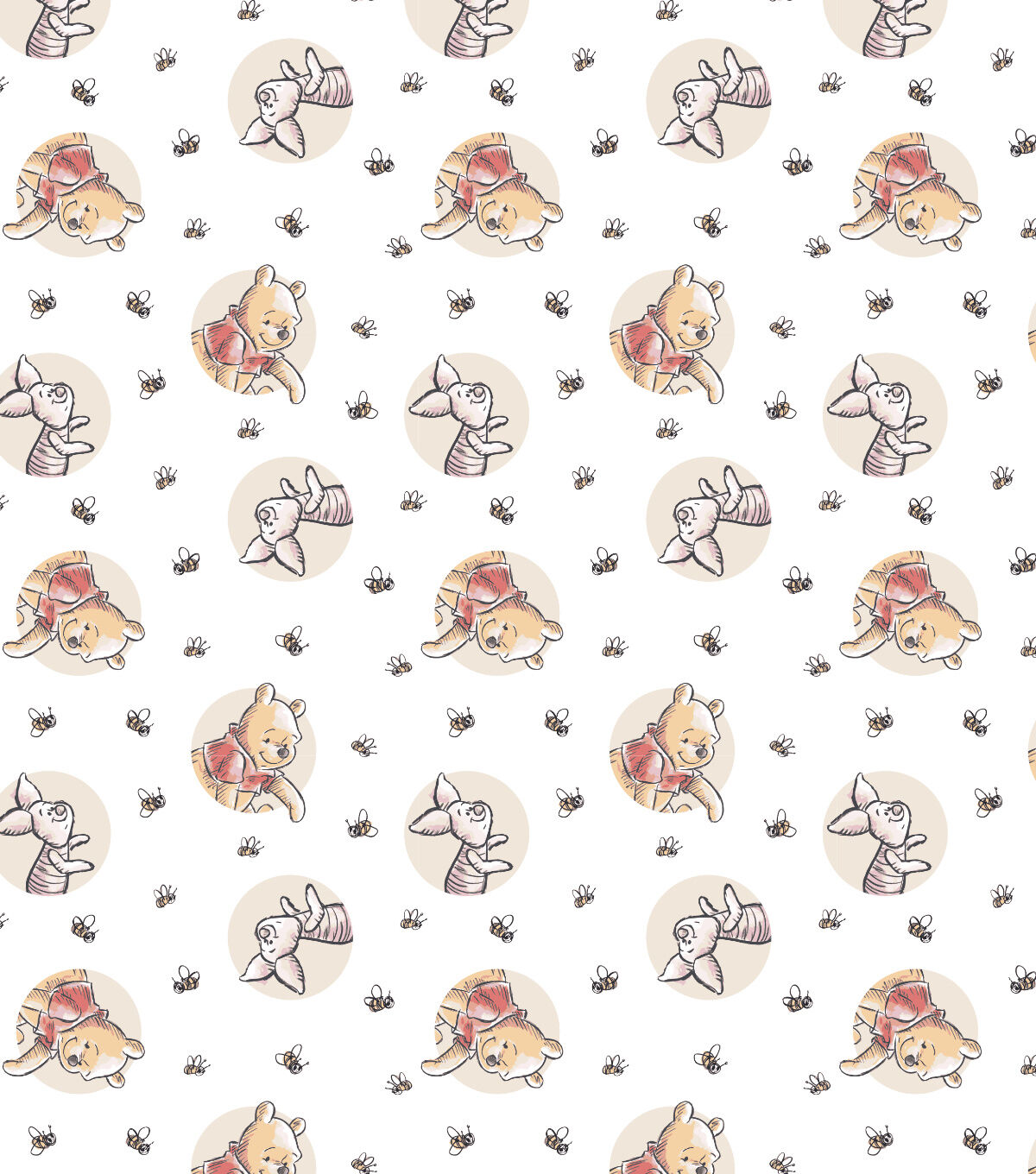 Decorate with Disney Winnie The Pooh & Piglet on White Knit Fabric