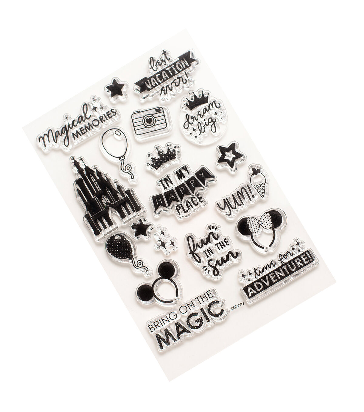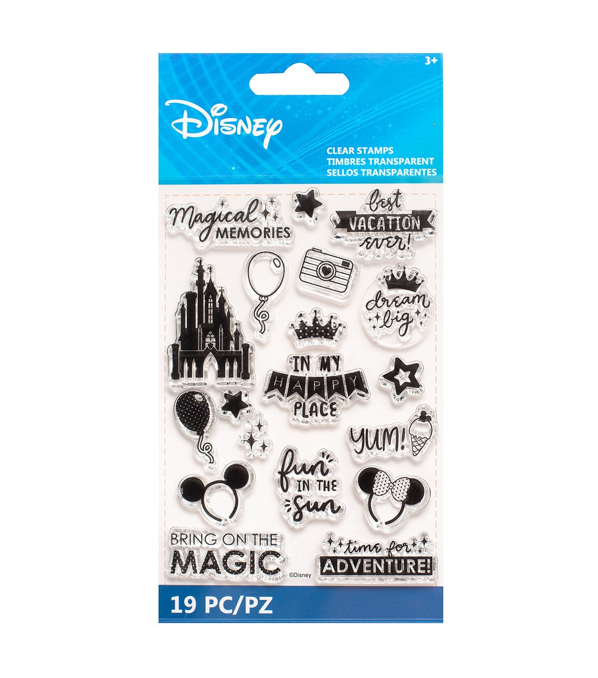 Stamps are the perfect way to customize the look of your projects! Disney stamps come in a variety of shapes and sizes to choose from and can be customized with your favorite colors of inks. Then wipe them down and use them again! This package includes 19 clear silicone ink stamps.