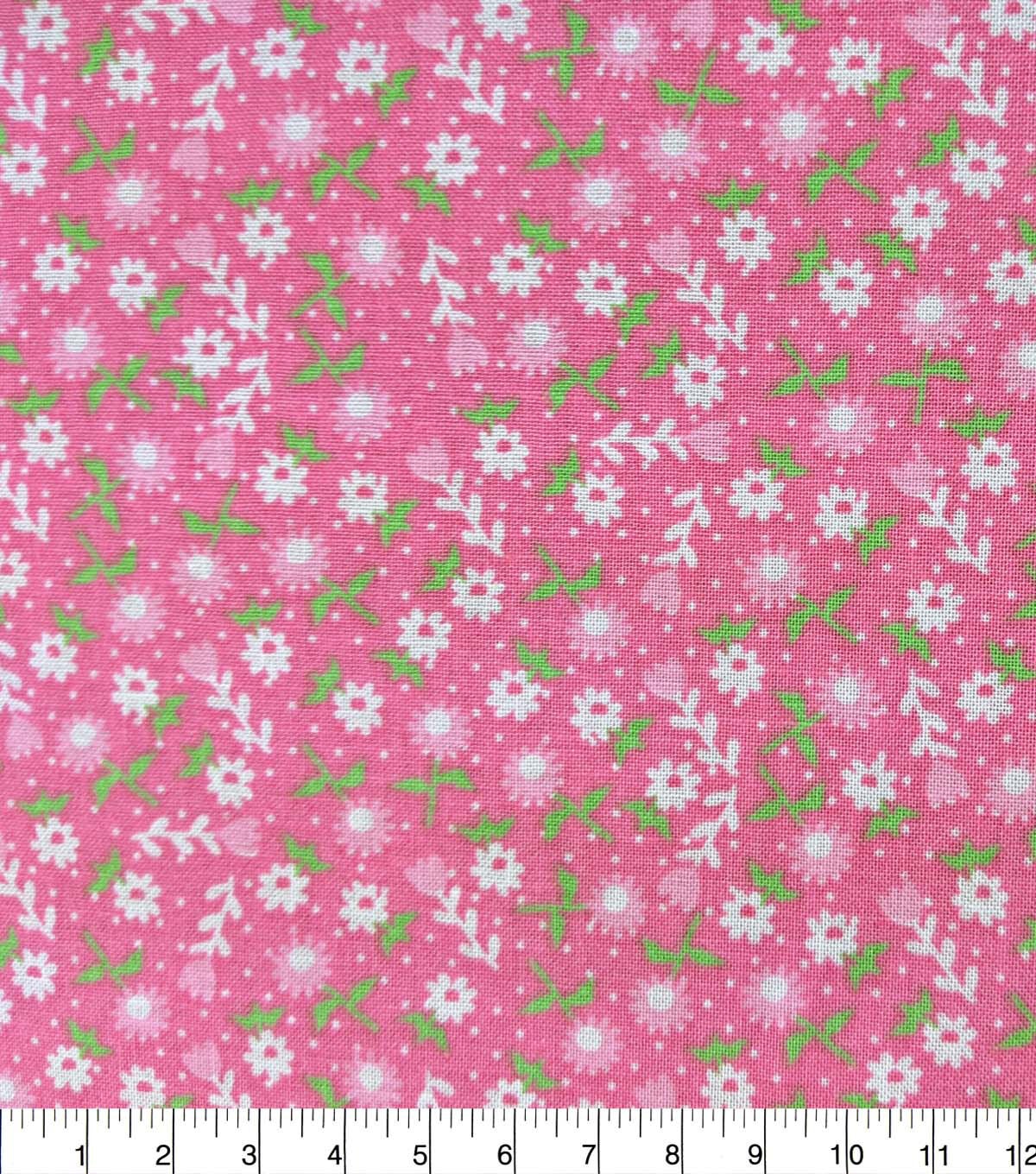 Ditzy Floral on Pink Quilt Cotton Fabric by Quilter's Showcase
