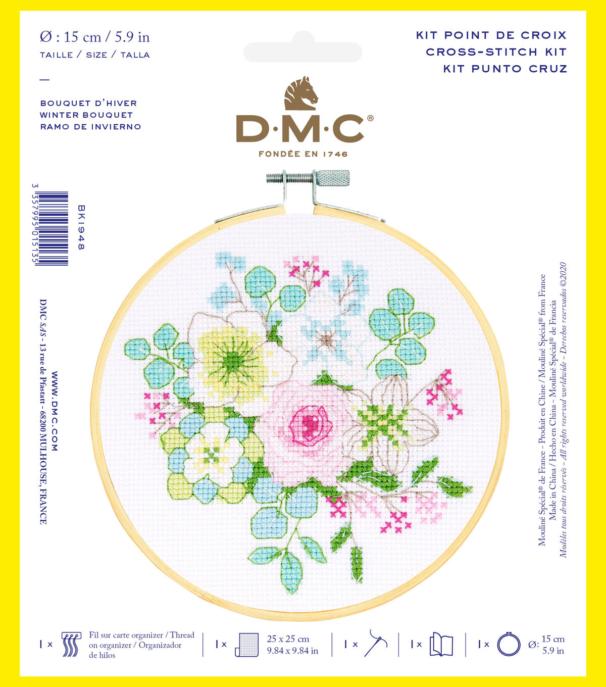 Each kit contains all materials needed to complete the project. Article 117 DMC Embroidery Floss, Aida 14 count, 100% Cotton