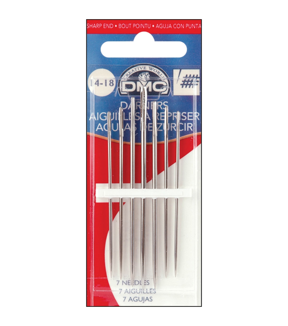 The DMC Darner's Needles Sizes 14/18 Pack of 7 are ideal for darning and mending fabrics. Made of premium grade nickel-plated steel, these darner needles measure between 2 to 2.5-inches long and are designed with blunt tips and large eyes which make them suitable for mending with wool and similar heavy materials. You can also use them for smocking, ribbon embroidery and other needlework techniques. Darner's needles in two different sizes are included in this pack. Available in other sizes with coordinating packs to suit your sewing requirements. This pack contains seven Size 14/18 needles.