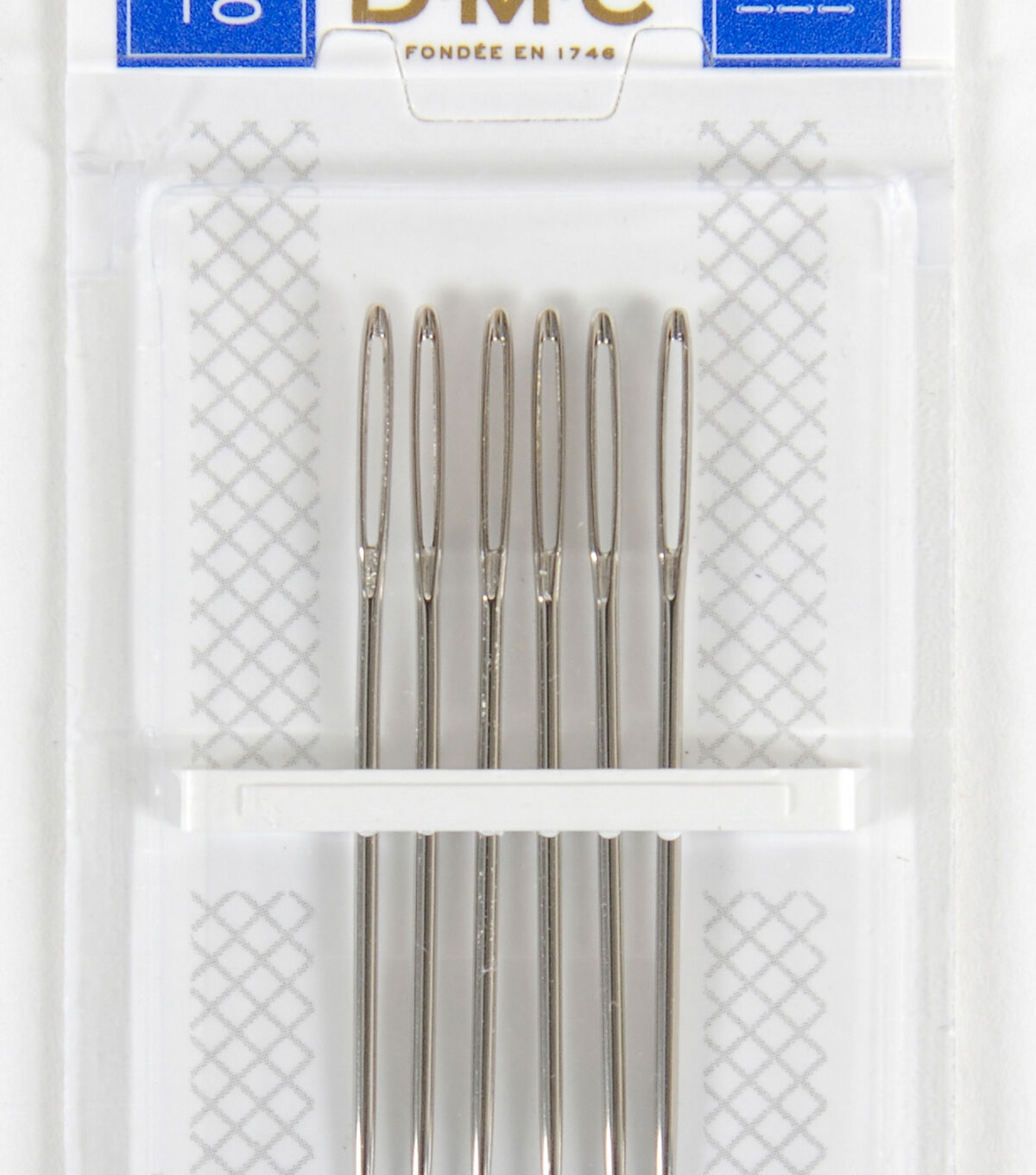 The DMC Darner's Needles Size 18 Pack of 7 are ideal for darning and mending fabrics. Made of premium grade nickel-plated steel, these darner's needles measure between 2 to 2.5-inches long and are designed with blunt tips and large eyes which make them suitable for mending with wool and similar heavy materials. You can also use them for smocking, ribbon embroidery and other needlework techniques. Available in other sizes with coordinating packs to suit your sewing requirements. This pack contains seven Size 18 darner needles.