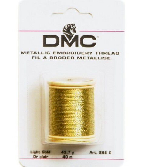 Add sparkle and shine to your designs for apparel and home decor projects using the DMC Metallic Embroidery Thread Gold. This lovely 3-ply non-divisible metallic thread is made of synthetic material and comes in a easy-to-use snap top spool that measures 44 yards. Use the washable and tarnish-resistant metallic embroidery thread to create stylish embroidery, needlepoint or cross stitch work. Choose from different metallic shades that are available to suit your project needs.