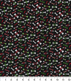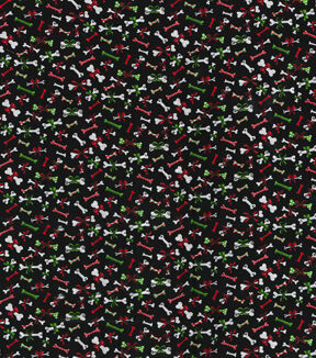 Dog Bones on Black Christmas Cotton Fabric