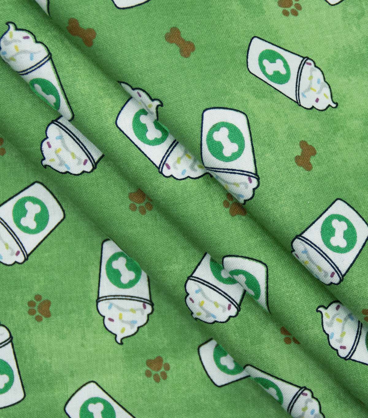 Get Ready to Bark with Joy with Our Dog Cups on Green Novelty Cotton Fabric