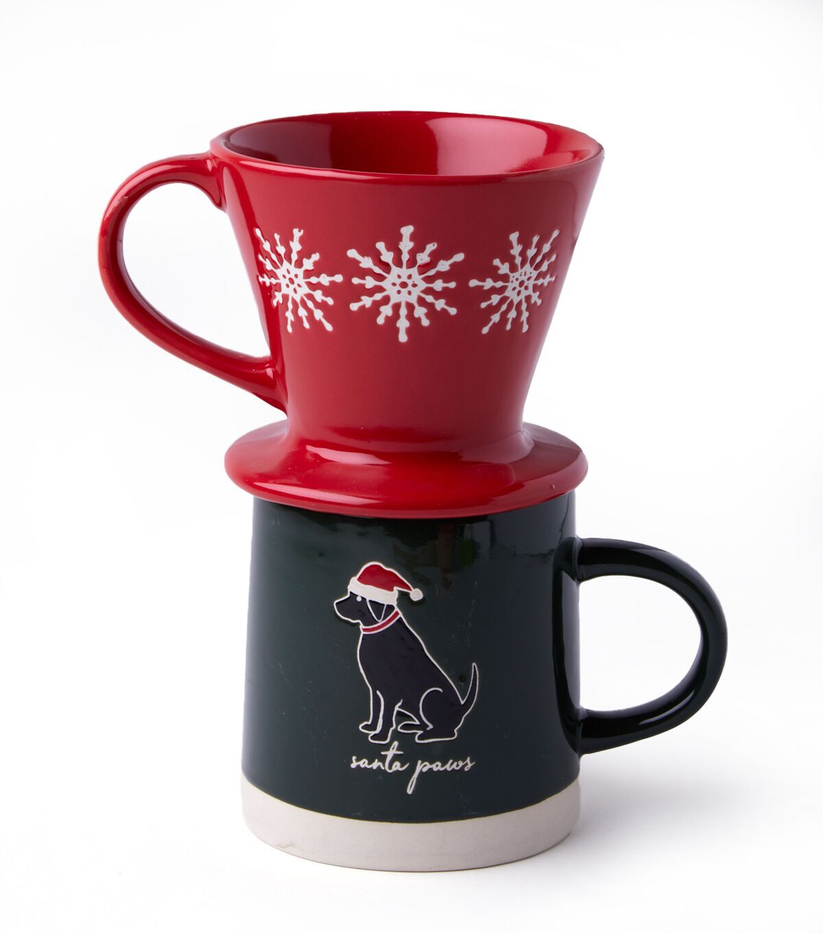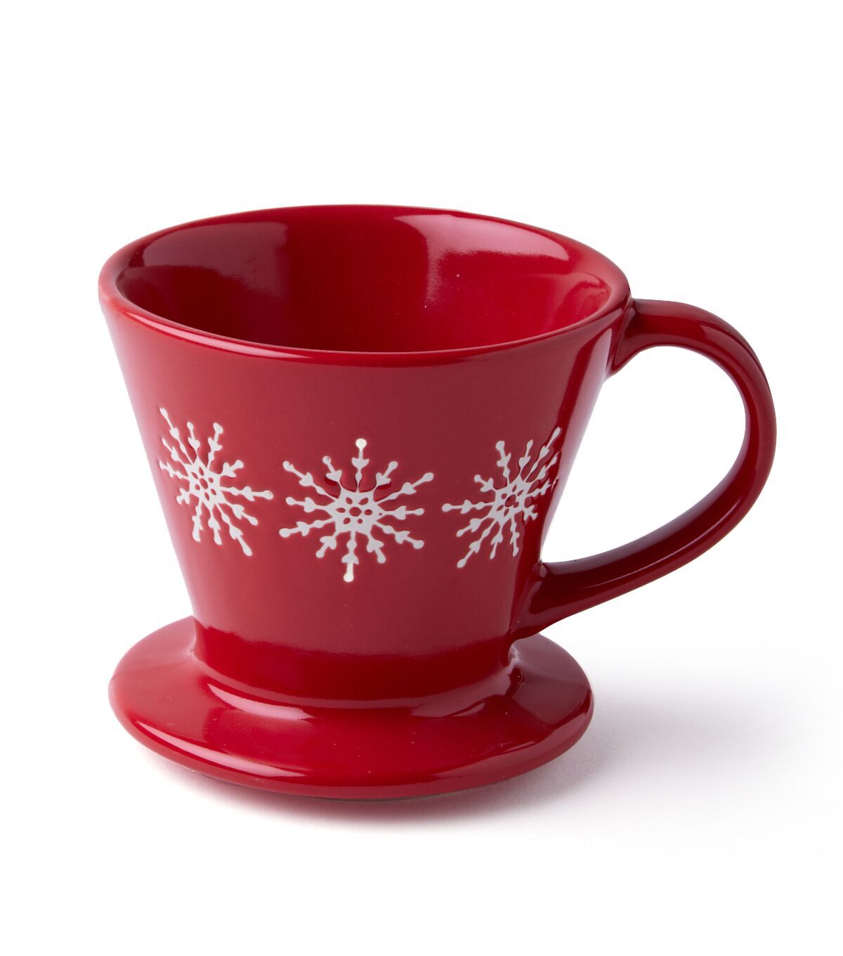 Drink coffee from the Christmas Dog on Green Ceramic Mug by Place & Time to cherish the bond you share with your furry friend. Bask in the warmth of a richly brewed coffee using the Christmas Snowflakes on Red Ceramic Pour Over Coffee Dripper by Place & Time. Ideal for those who appreciate the art of manual brewing, this dripper allows for a controlled infusion, releasing the intricate notes of your coffee beans. A wonderful addition to any coffee lover's holiday collection or a thoughtful gift for a fellow brew enthusiast.