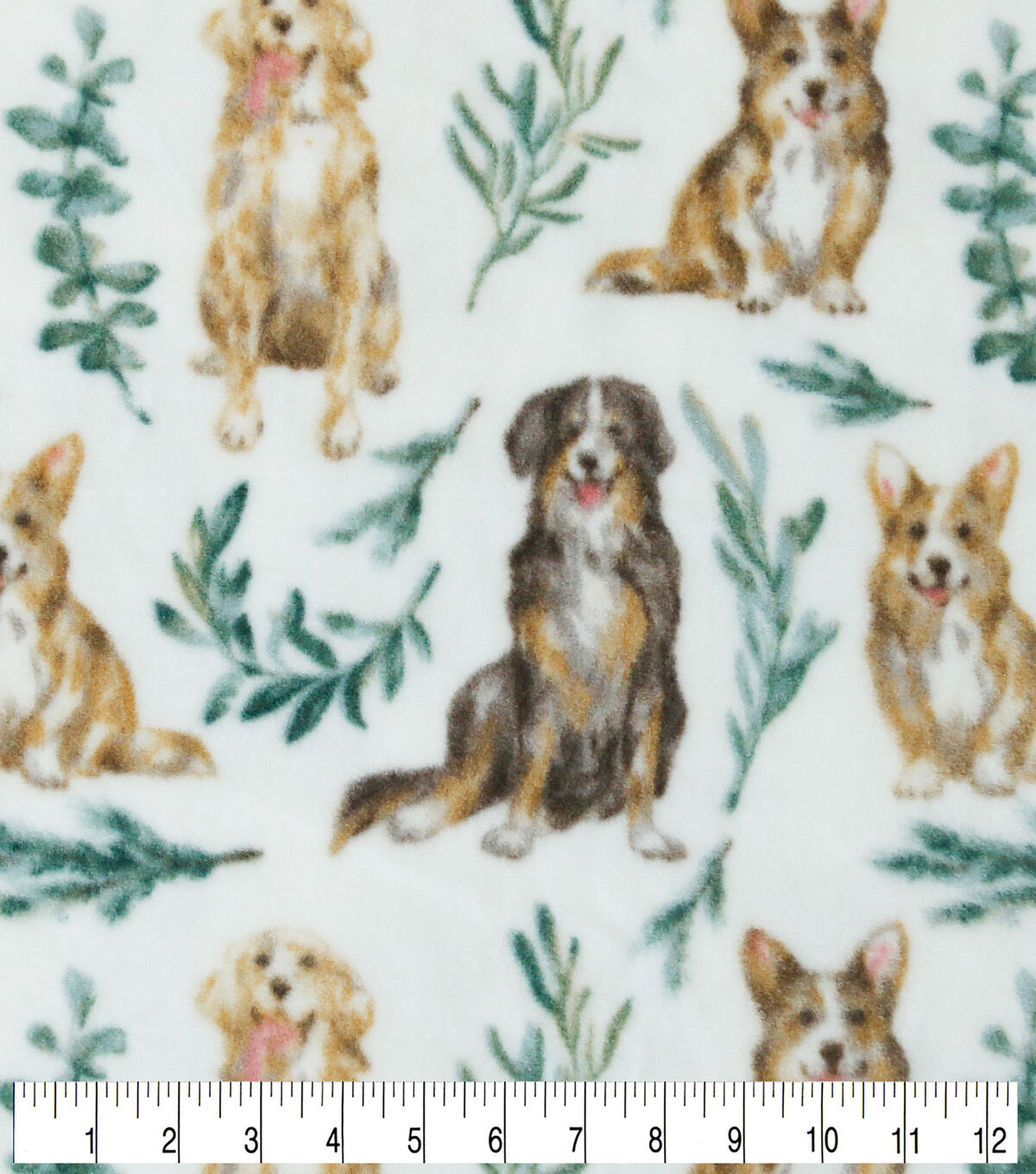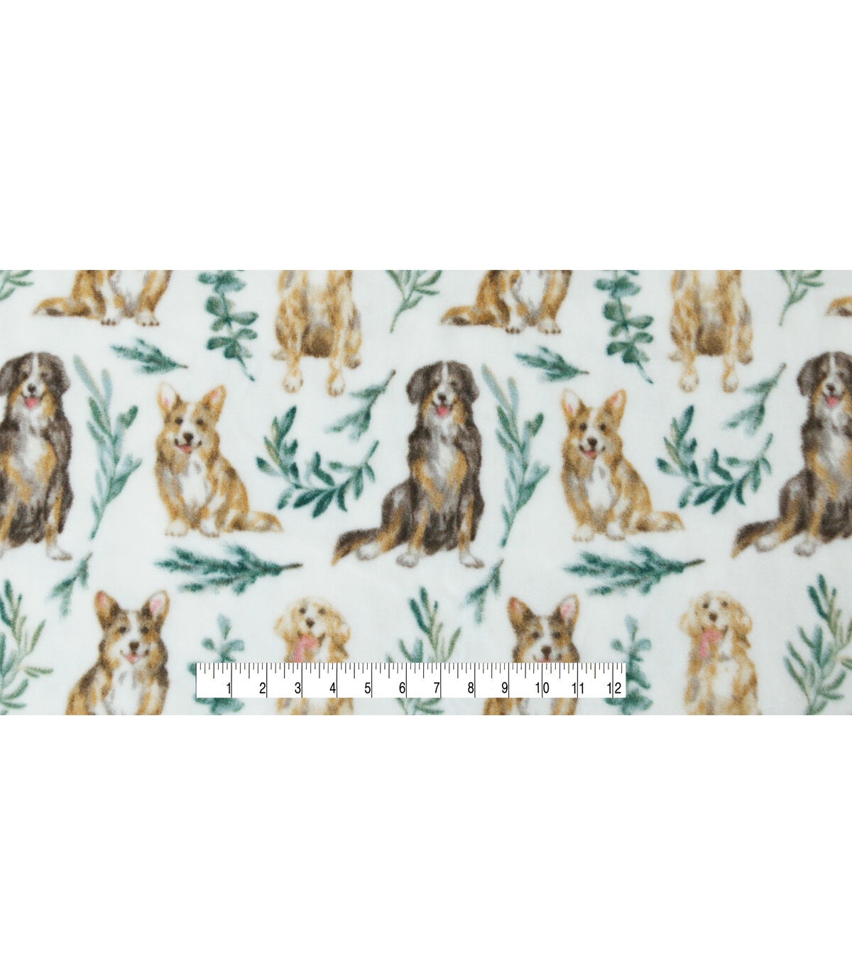 • Dogs & Leaves on White Anti Pill Fleece Fabric