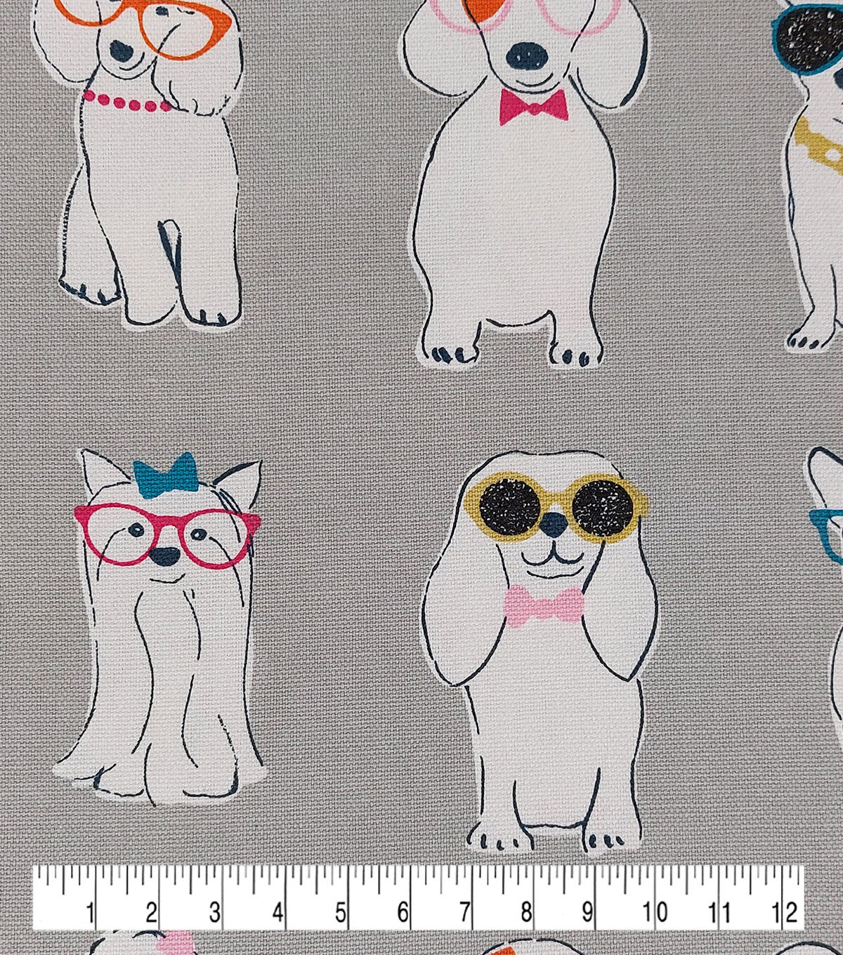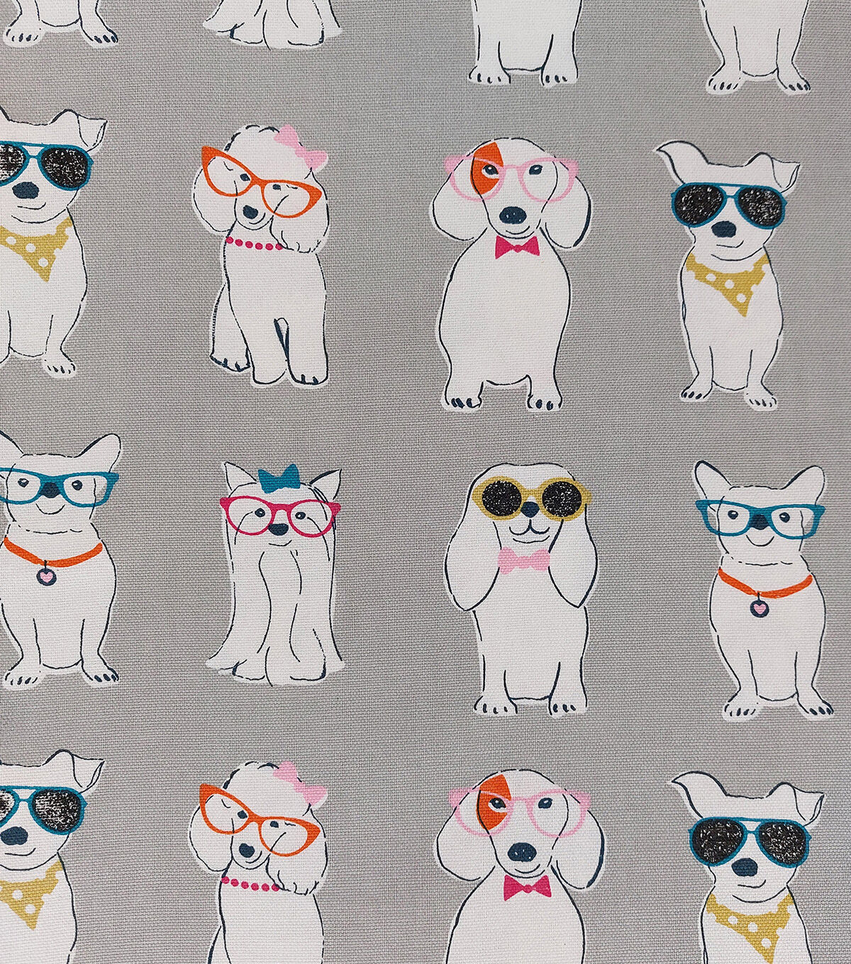 Dogs with Glasses Cotton Canvas Fabric
