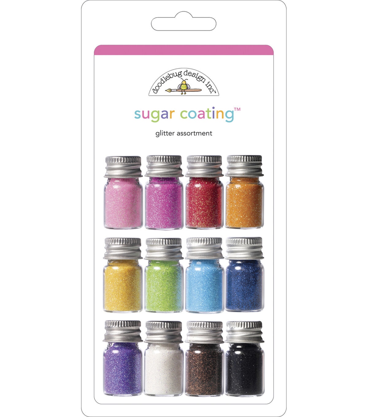 The Doodlebug Sugar Coating Glitter Assortment - Metallic will make the perfect gift for any avid crafter in your life. They can use it to add a little bling to scrapbook layouts or accentuate large art and craft projects. This pack contains twelve 0.14-ounce jars of glitter that are acid and lead free and non-toxic.
