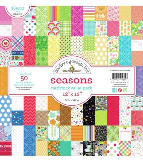 Kickstart your next papercrafting or scrapbooking project with the Doodlebug Cardstock Value Pack - Seasons. This pack contains 50 double-sided sheets measuring 12 x 12 inches. You can use them to design greeting cards, party invites or decorate photo frames. They come in different designs and are acid and lignin free.