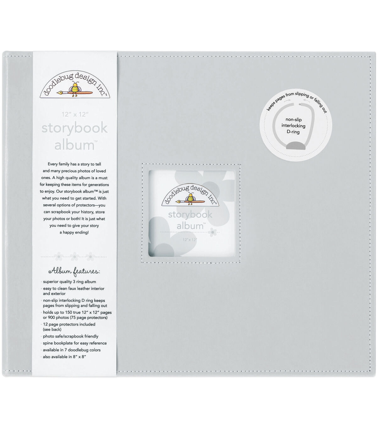 Add photos of your little one to the Doodlebug Storybook D-ring Album - Gray and gift that to them on their birthday. This three-ring album is designed with a 3.5 x 3.5-inch photo window on the front cover. The album also includes 12 page protectors, 10 true 12 x 12-inch pockets one photo-recipe card protector with 6 pockets and one combo protector with 4 pockets. Choose from a variety of albums measuring 8.75 x 11 x 2.5 inches in interesting designs.