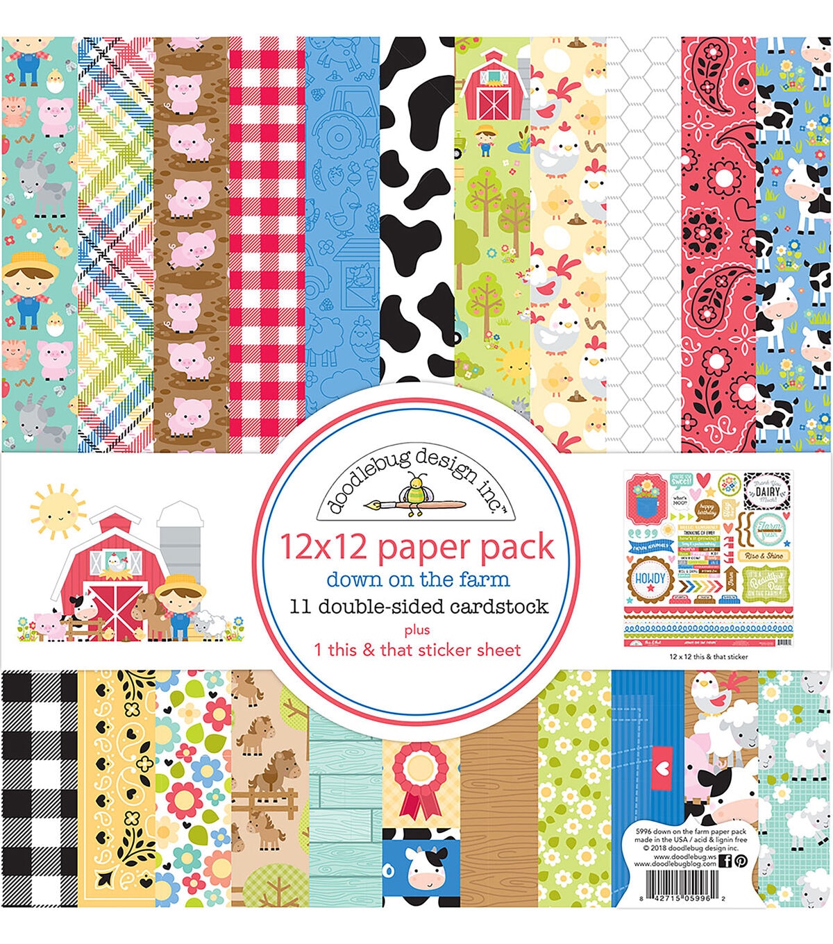Add a touch of elegance to your papercrafting projects with the Doodlebug Down on the Farm Double-sided Cardstock Pack. This pack contains eleven 12 x 12-inch double-sided acid- and -lignin-free sheets with a different design on each and one 12 x 12-inch sticker sheet. Use them to decorate scrapbooks, cards, calendars, handmade journals, keepsake albums and more.