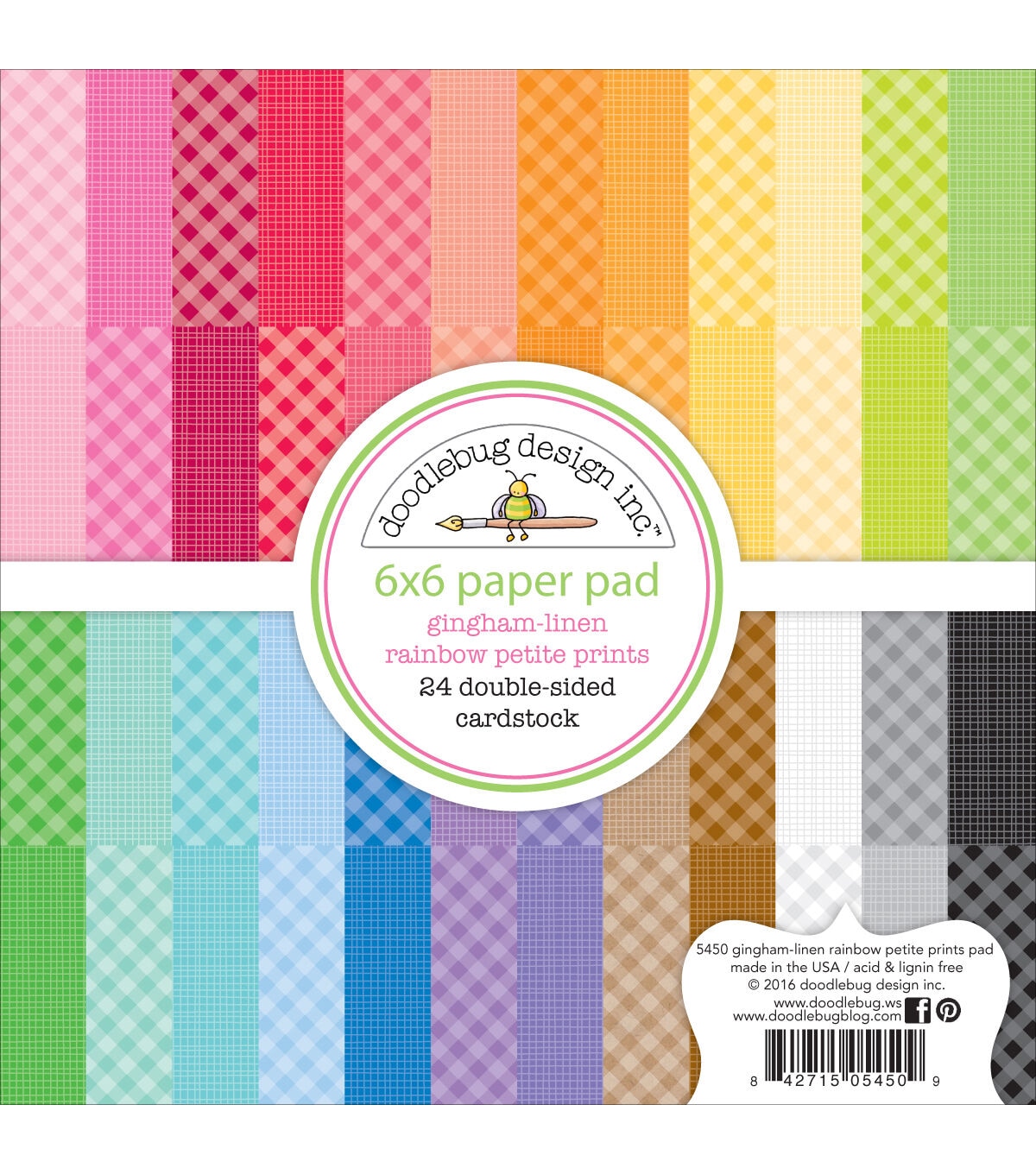 Create beautiful handmade cards, posters, scrapbook covers, journal inserts and more with the Doodlebug Petite Prints Double-sided Paper Pad - Gingham Pattern. This pad contains 24 double-sided sheets measuring 6 x 6 inches. They come in 12 different designs, two of each design. They are acid and lignin free.