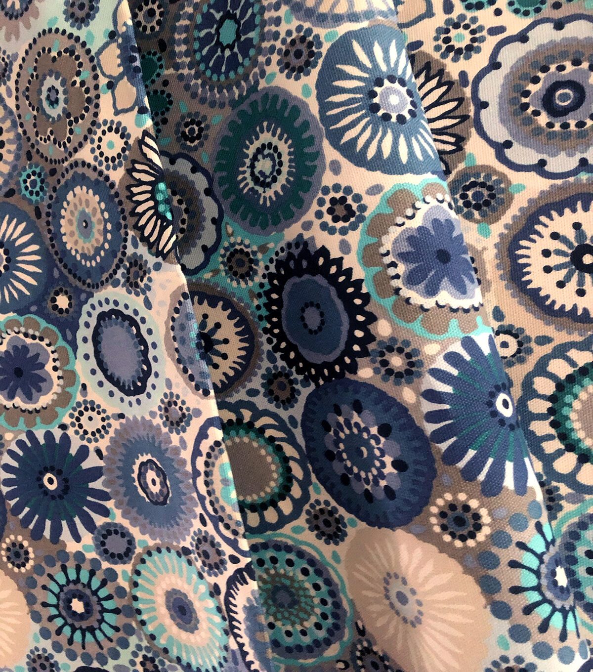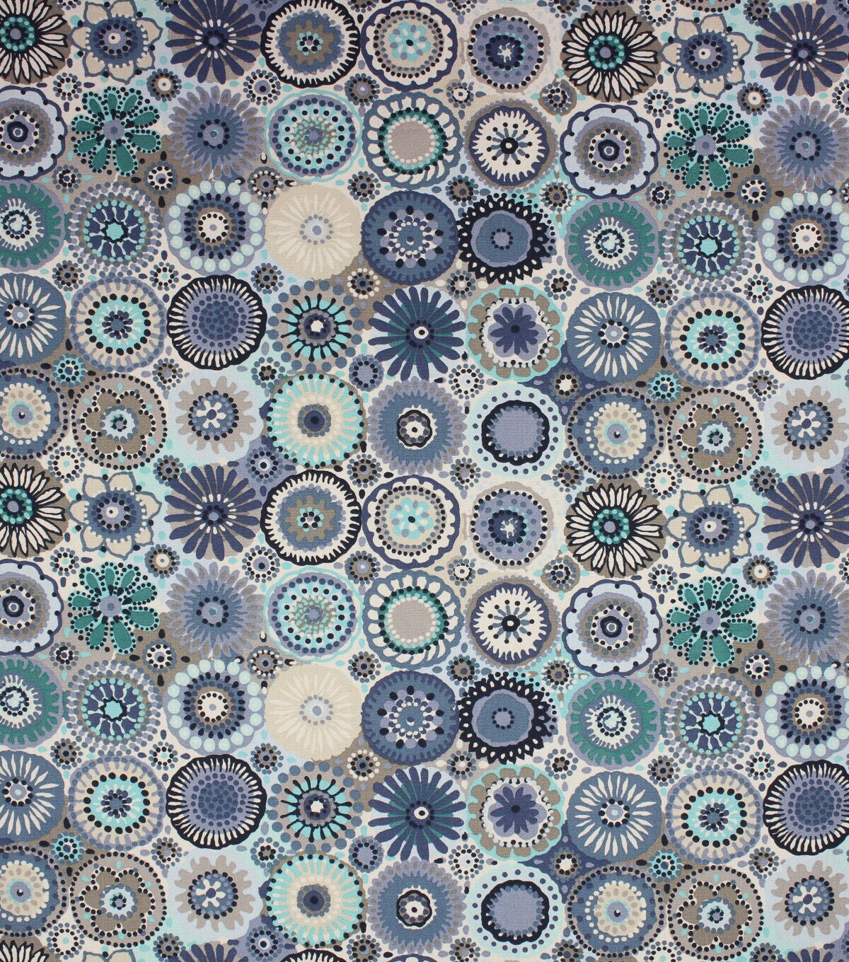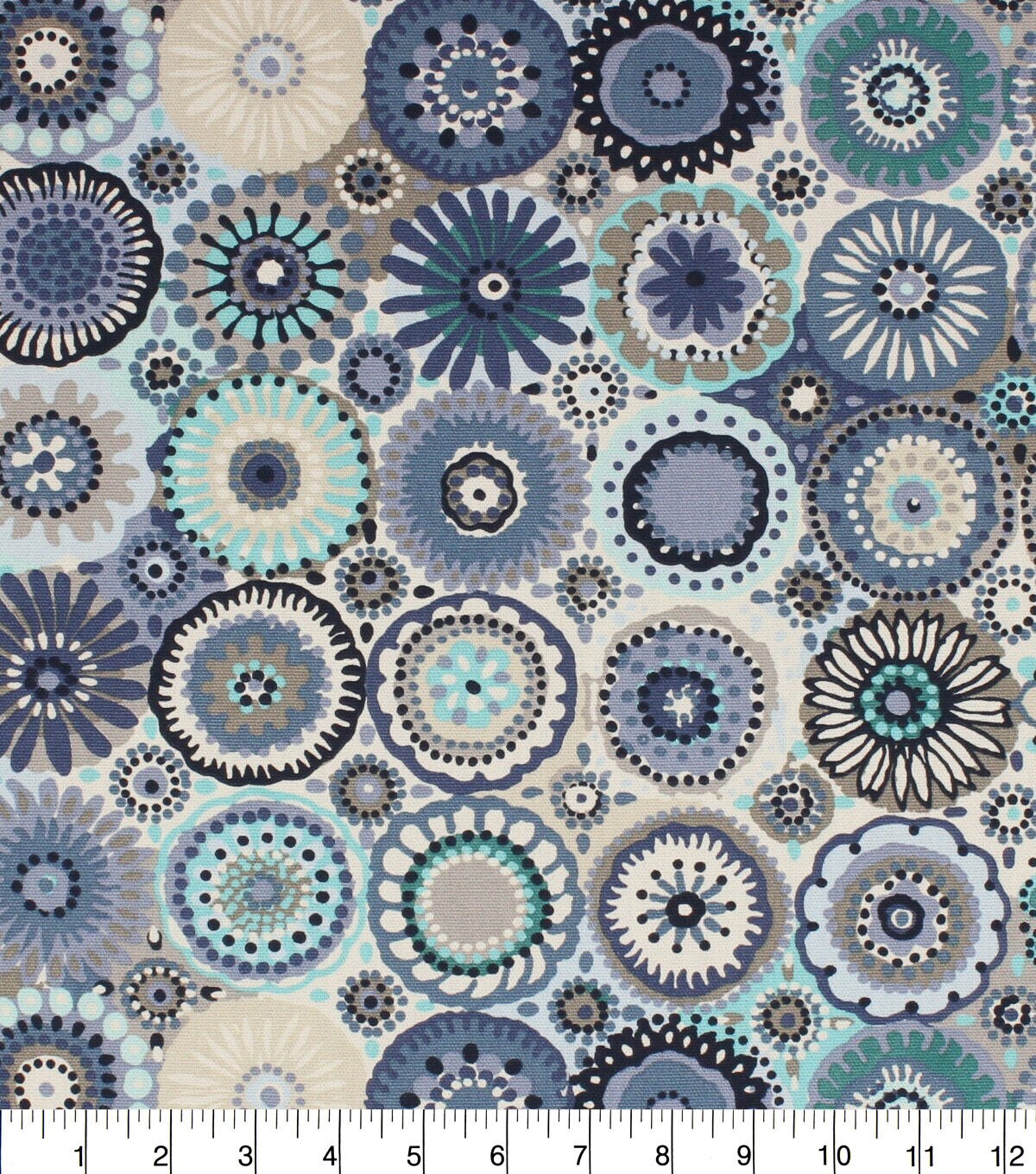 this whimsical design evokes the feel of hand crochet in shades of blue palette. Printed on 100% cotton it is a perfect option for Cotton Canvas or craft DIY projects. Look for Doreen in additional colors.