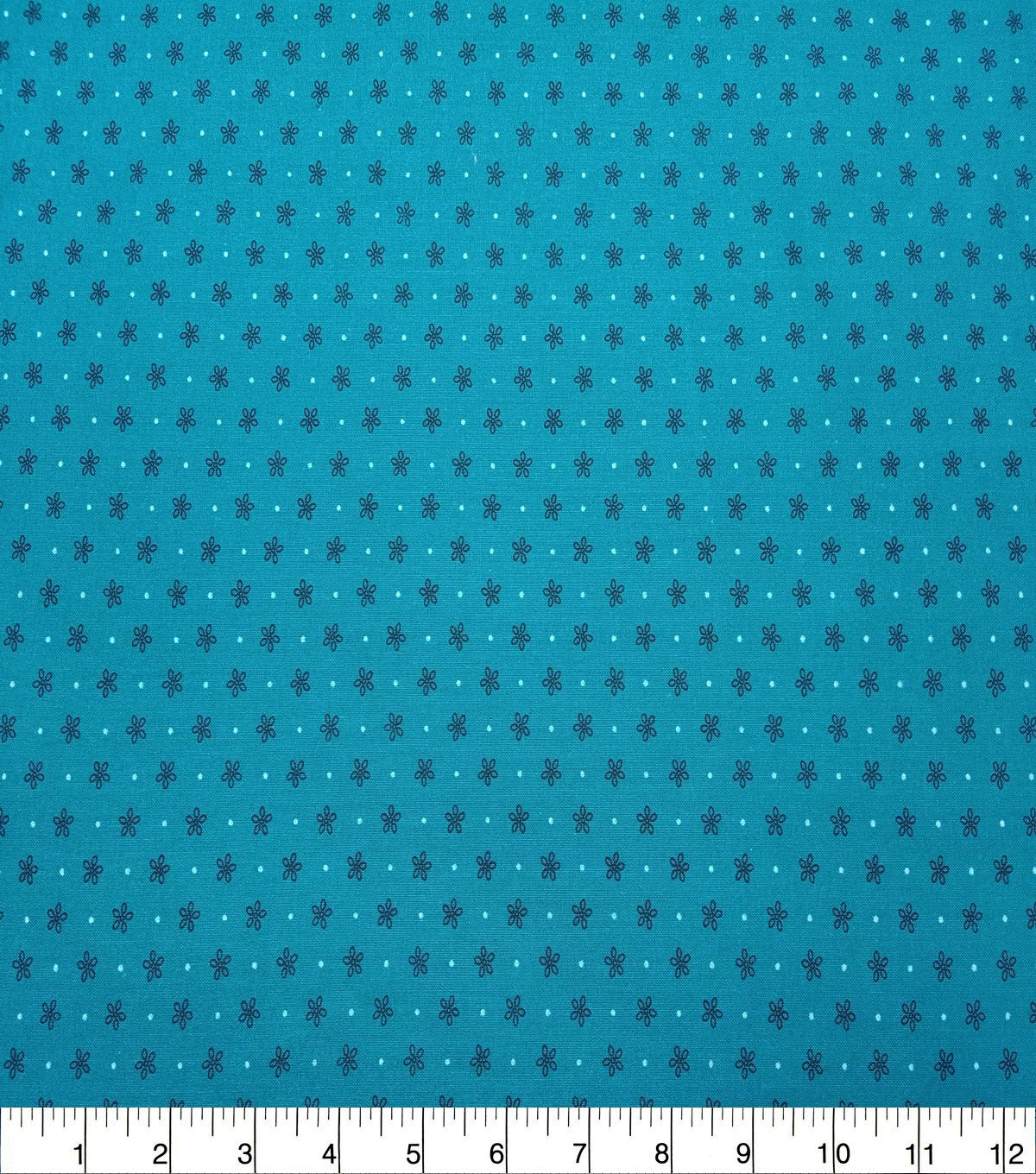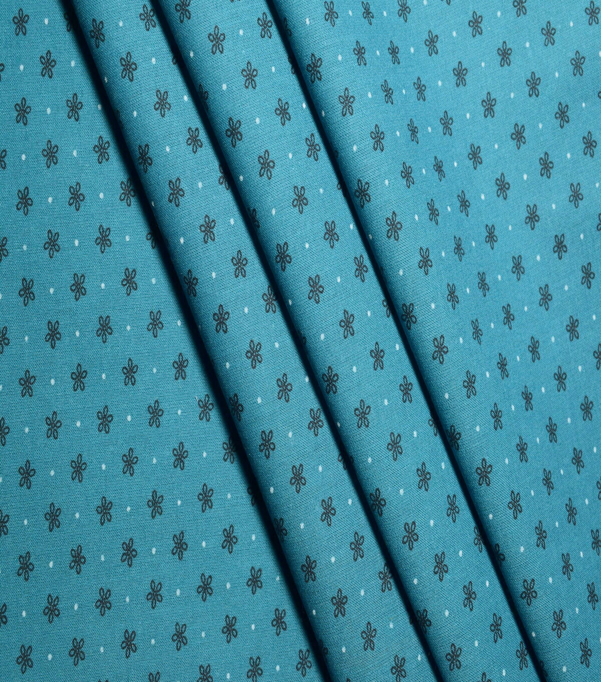 Dots & Flowers on Blue Enamel Quilt Cotton Fabric by Quilter's Showcase