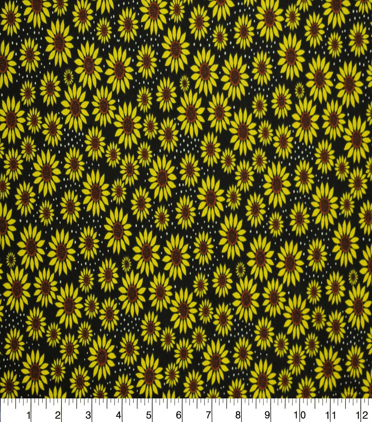 • Dots & Sunflowers on Black Quilt Cotton Fabric by Quilter's Showcase