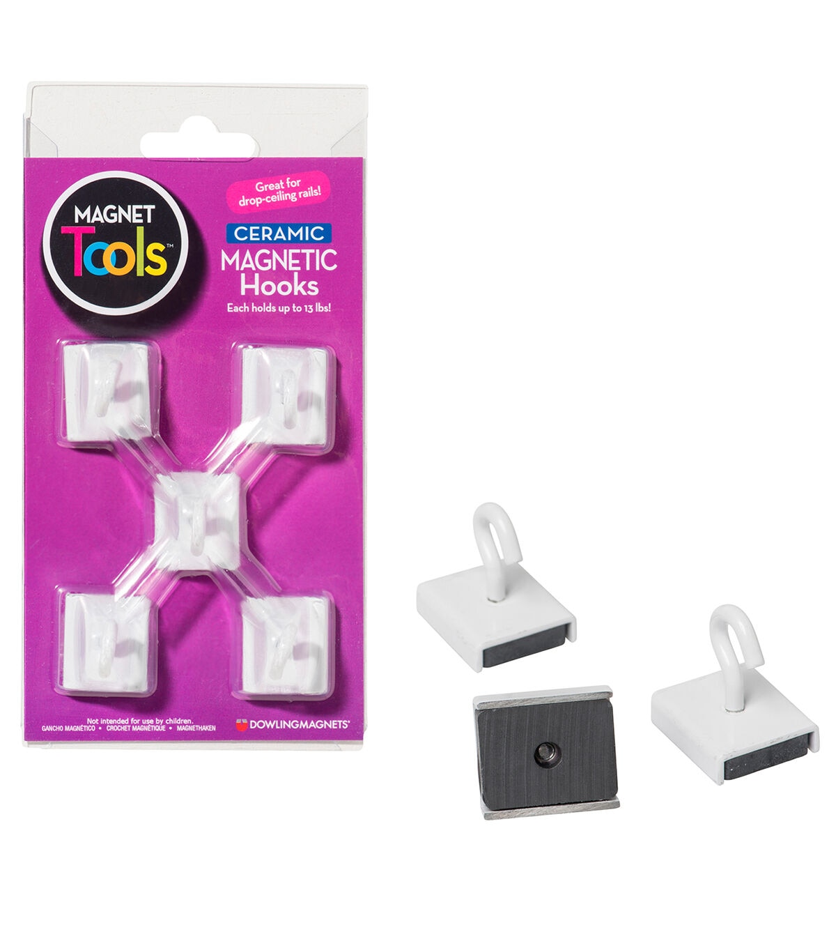 Decorate your classroom by hanging objects from the ceiling with the Dowling Magnets Ceramic Ceiling Magnetic Hooks. They help you stay organized and are also perfect for drop ceiling railings, sides of file cabinets and much more. These hooks also make a great tool for organizing school or office space.