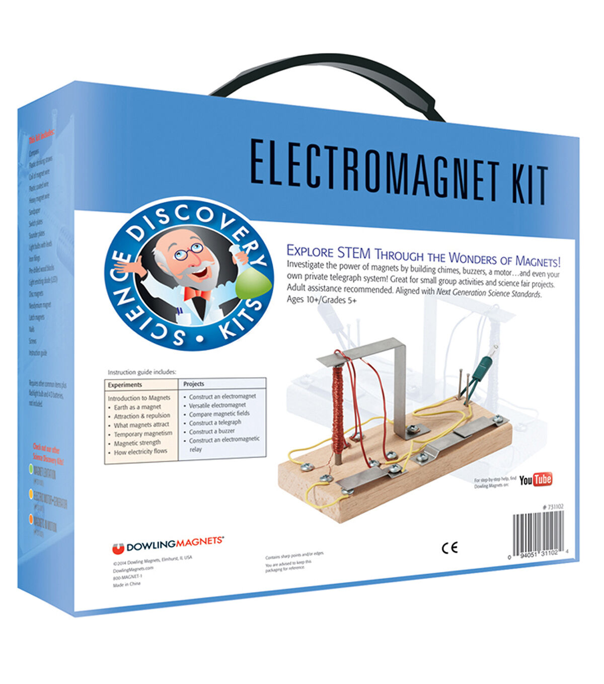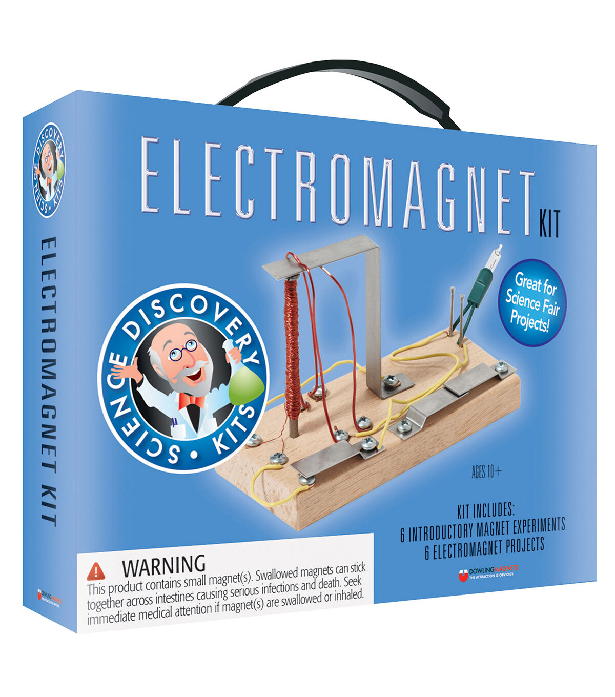 - Build a doorbell, telegraph system and even a catapult all using a true electromagnet. Kit includes: disc, latch and neodymium magnets, compass, straws, wires, sand paper, switch plates, wood screws, nails, light bulbs, battery holders, iron filings, pre-