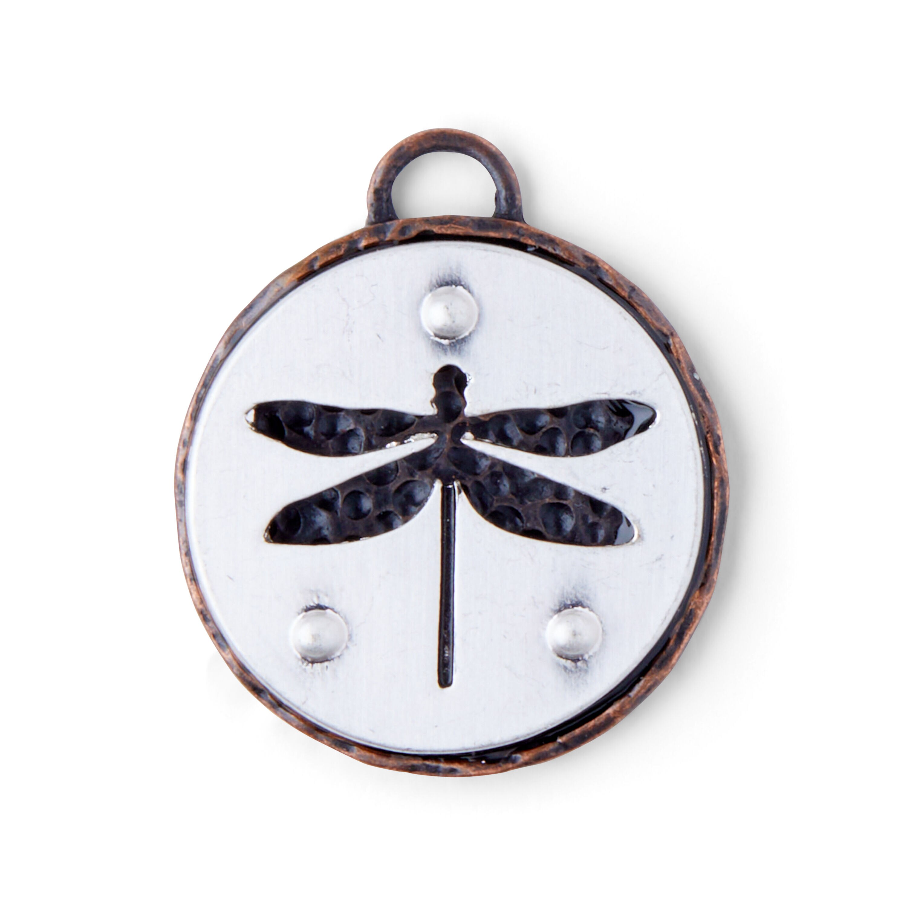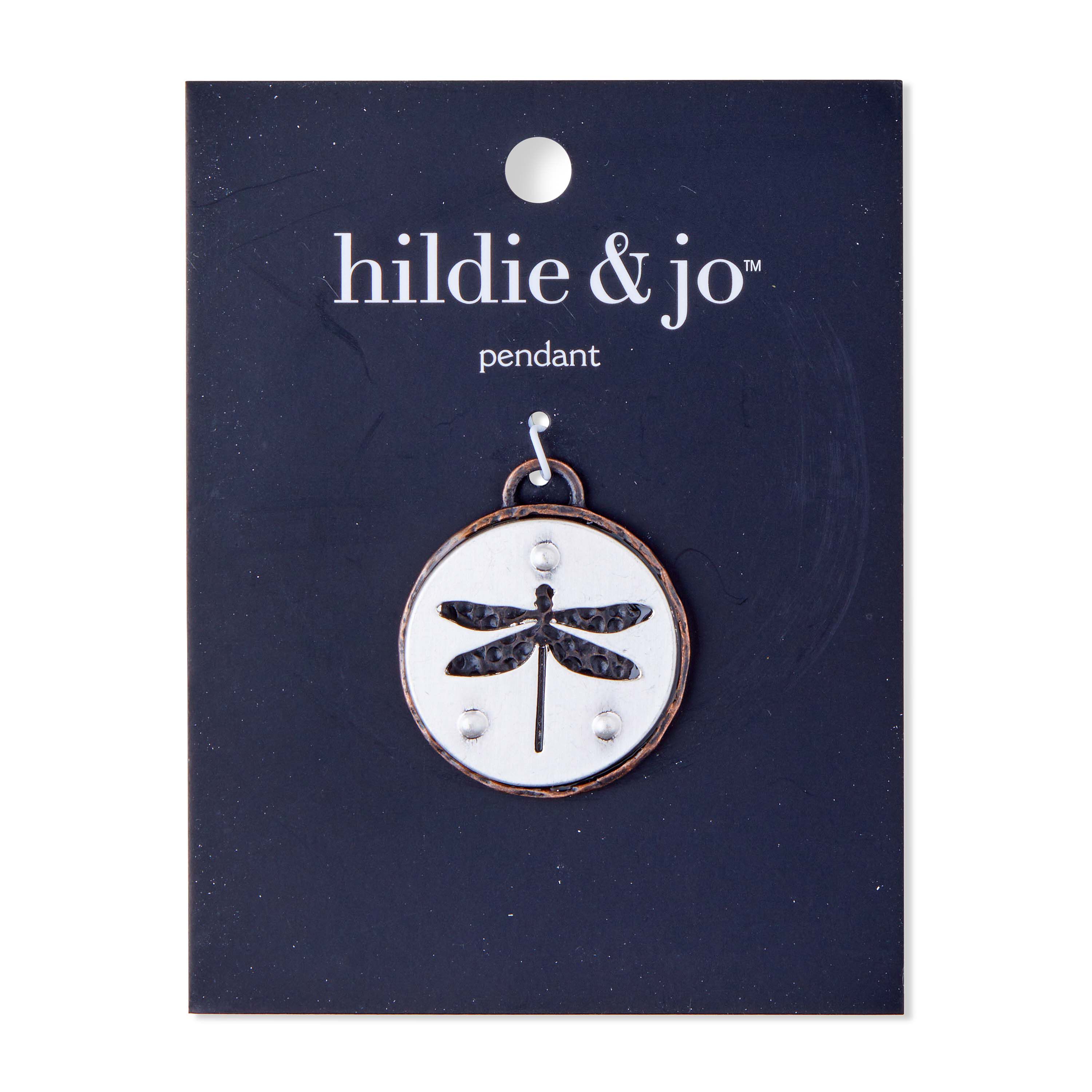 Design a special piece of jewelry for yourself or your best friend using the hildie & jo Dragonfly Cut Out Round Pendant. This round pendant sports an antique look with a silhouette of a dragonfly engraved in the center for visual flair. Add it to a thin chain to create a lovely necklace.
